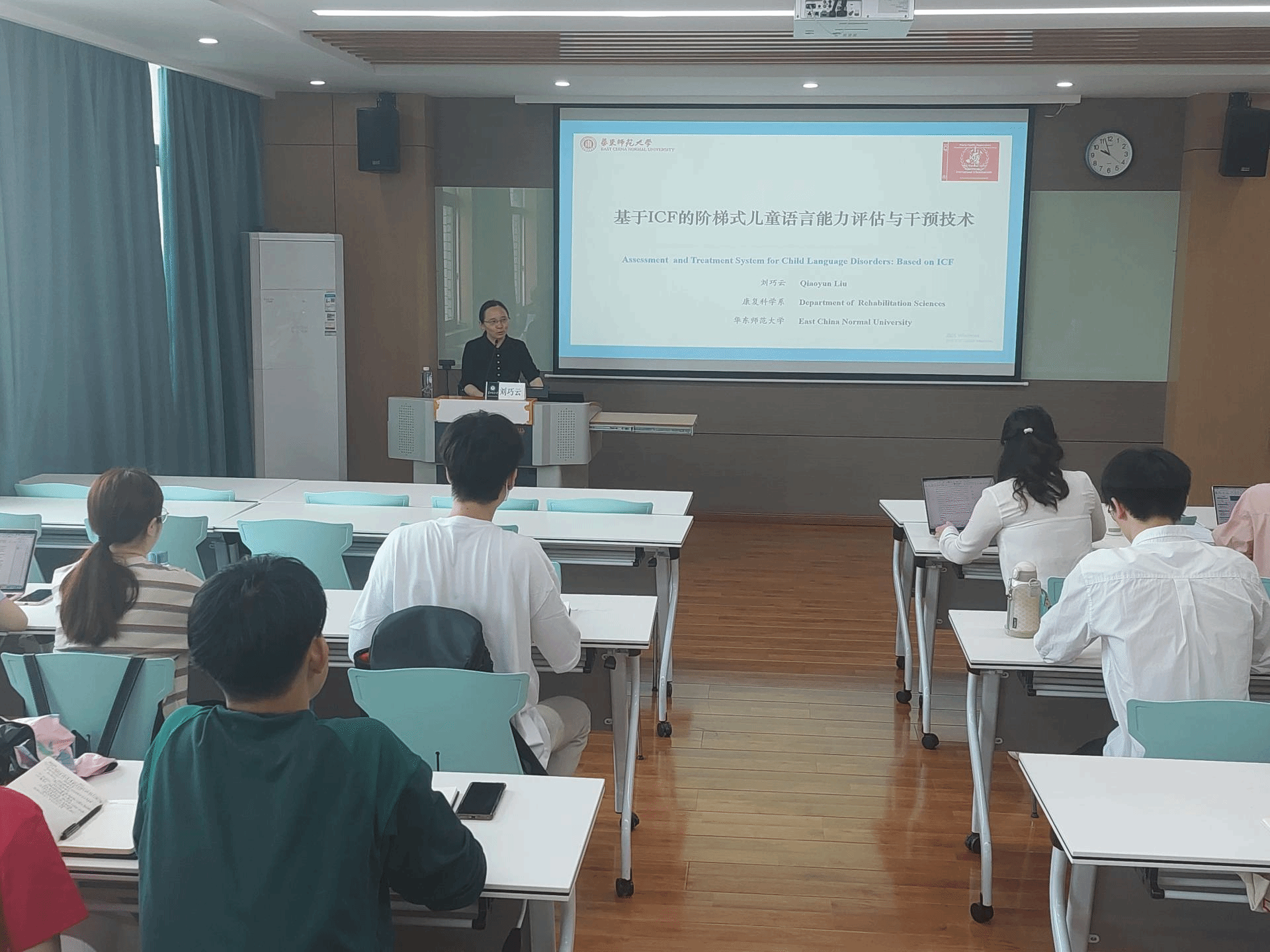 刘巧云教授从介绍国际功能、残疾和健康分类入手,系统地分析了基于ICF的阶梯式儿童语言能力评估与干预技术,丰富了我院师生对于儿童语言能力评估与干预技术的认知,更为清晰地理解了其具体操作与实践。
