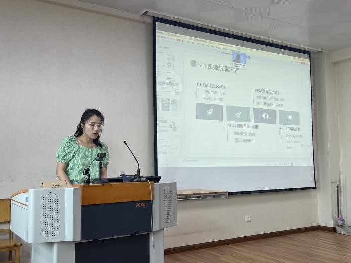 沈盼盼同学详细介绍了自己参加深圳市八个区域应聘考试的经验。她指出在求职过程中,有两点需要特别注意:一方面是坚定内心,做好心态调试。当周围同学们都已经找好工作或确定了毕业去向时,不要因为他人的进度较快而打乱自己的节奏,要始终保持好心态,积极应聘。另一方面是积累经验、做好选择。不管是否有明确的目标工作地或目标学校,都要多去参加招聘会,多积累经验,不打无准备之战。