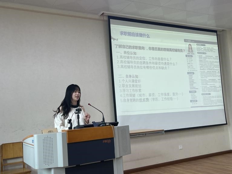 付佳琪先介绍了自己的个人情况,因为三年的兼职辅导员经历,所以她明确地想从事高校辅导员工作。她建议同学们在选择考辅导员前一定要明确自己的求职意向,充分了解辅导员的岗位要求、薪资待遇、工作内容等,结合自身的兴趣和未来规划再确定是否报考。其次,她分享了自己搜集整理的辅导员考试的信息资源,并提醒大家学会精选信息来源,避免信息冗杂。最后,她详细介绍了辅导员考试的具体内容和考核形式,建议大家要提前整理自己本科和研究生就读期间所有的荣誉和获奖证明,有条目地梳理资格审查的附件材料,并按照不同高校的要求精心打磨简历。
