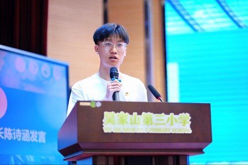 队长陈诗涵介绍本次暑期实践活动的主要内容,并强调纪律要求。他表示,雏鹰实践队以“先进价值引领发展,为国促育素质新人”为宗旨,坚持“创惠、创新、创信、创境”的实践思路,将在接下来的7个授课日内,完成调研与教学的双线任务。雏鹰实践队会深挖武汉红色历史文化,结合吴家山第三小学特色开发校本课程,上好理论与现实结合的“大思政课”。