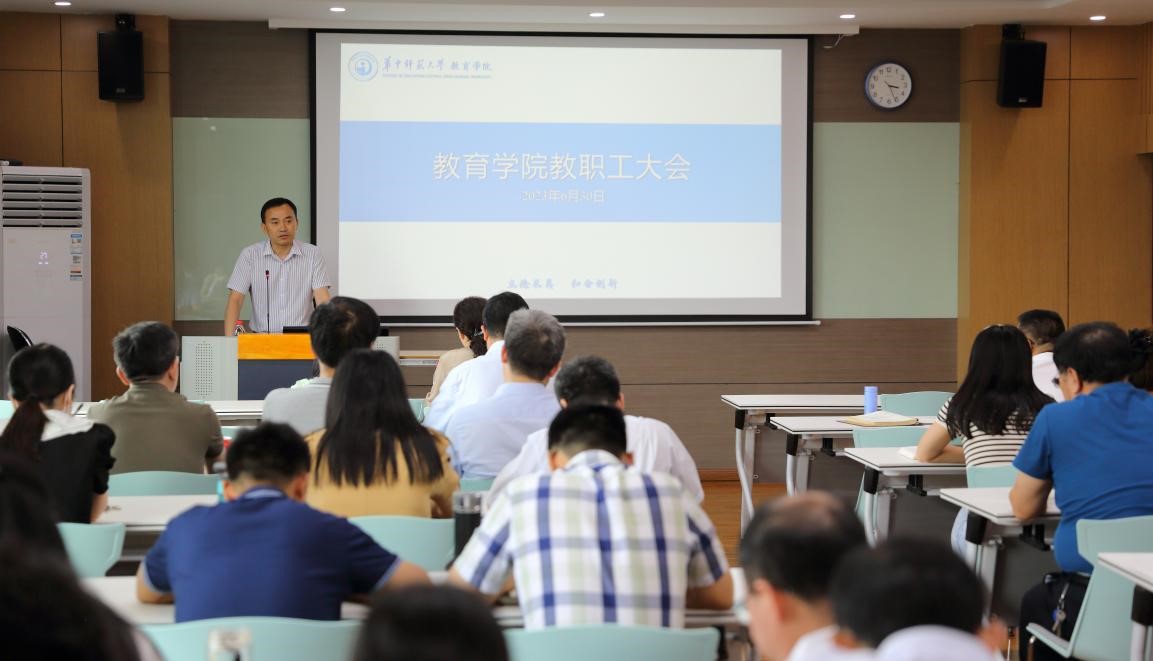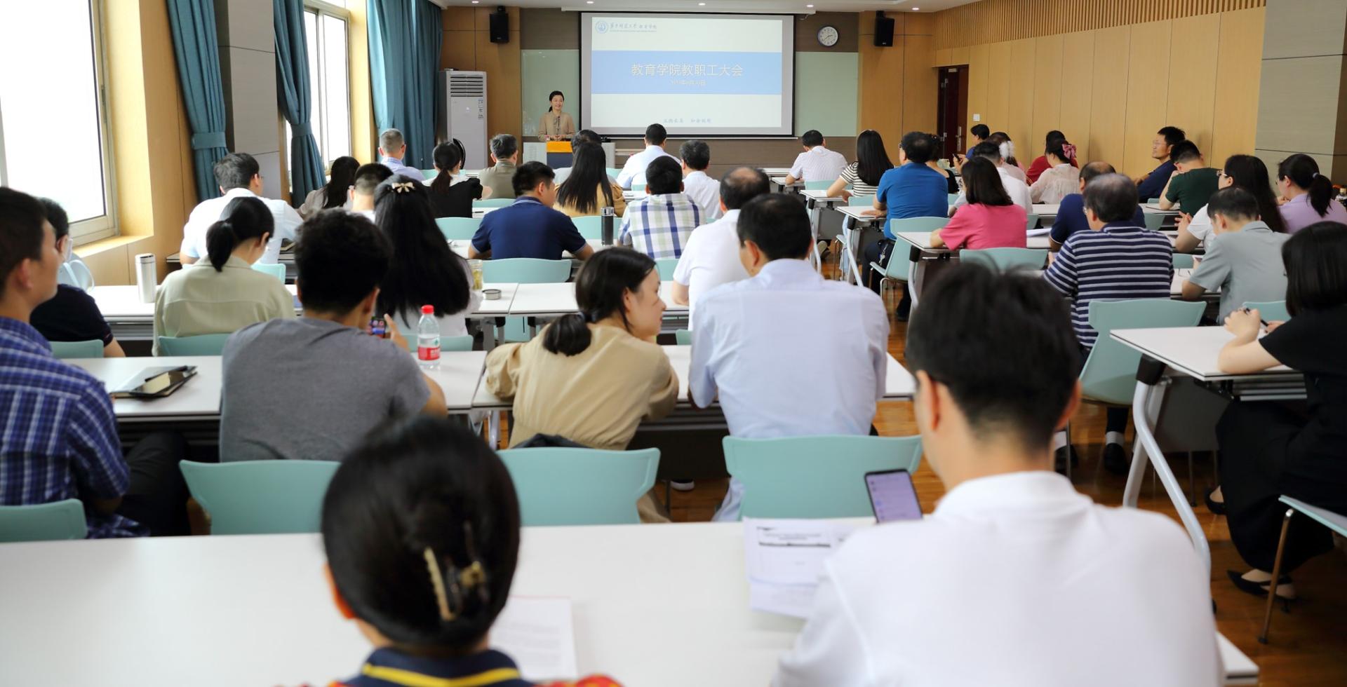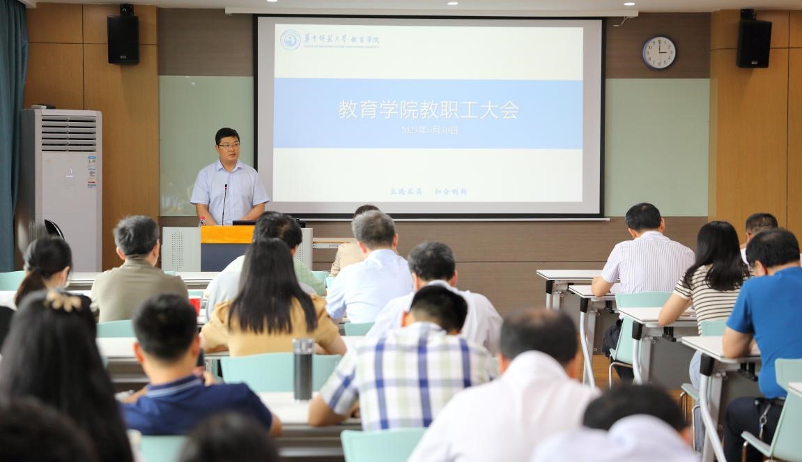 教育学院融媒体中心讯(通讯员 王健 覃娟)6月30日下午,学院在905学术报告厅召开全体教职工大会,部署学期末各项工作,大会由党委书记陈雪玲主持。