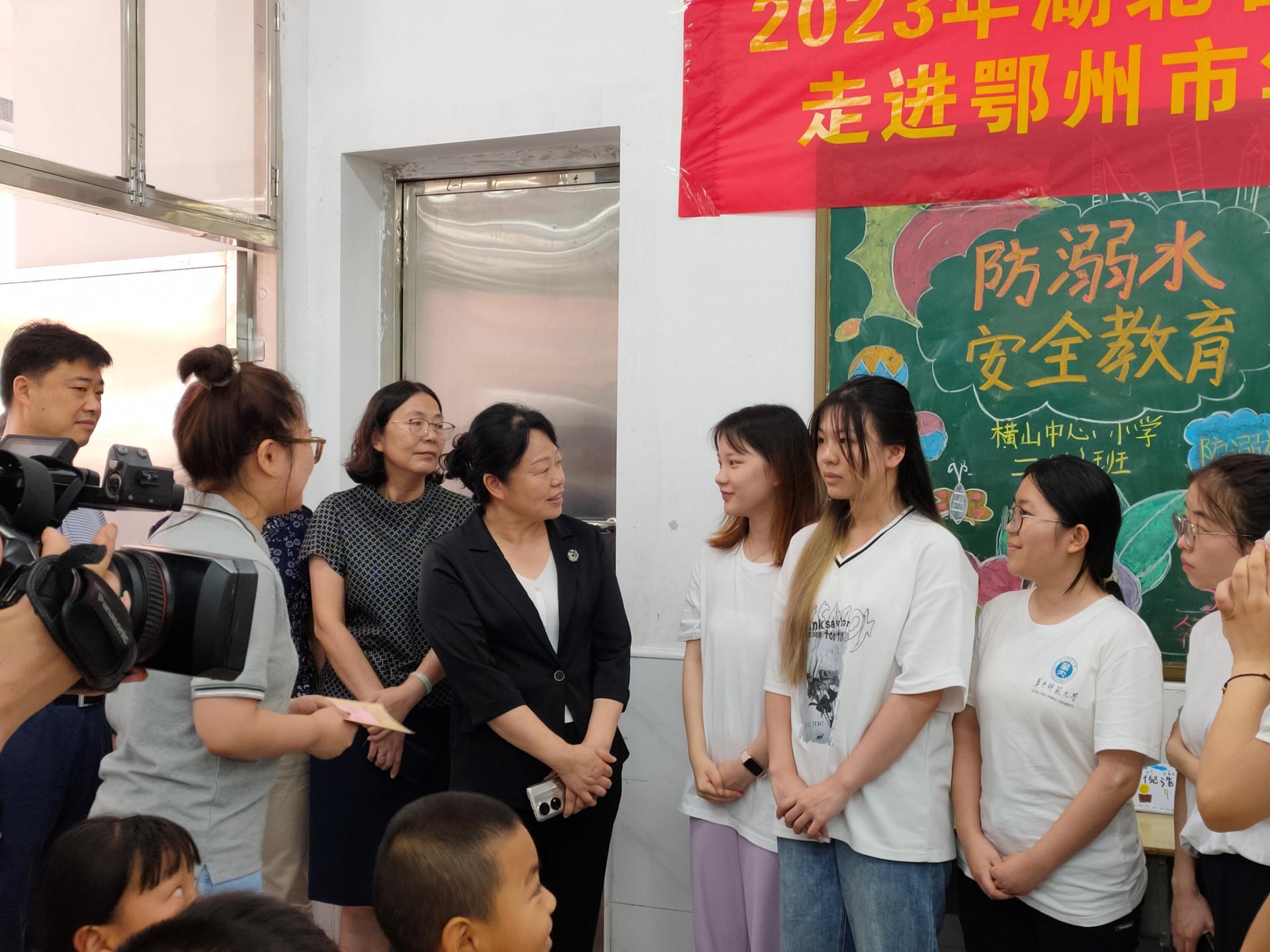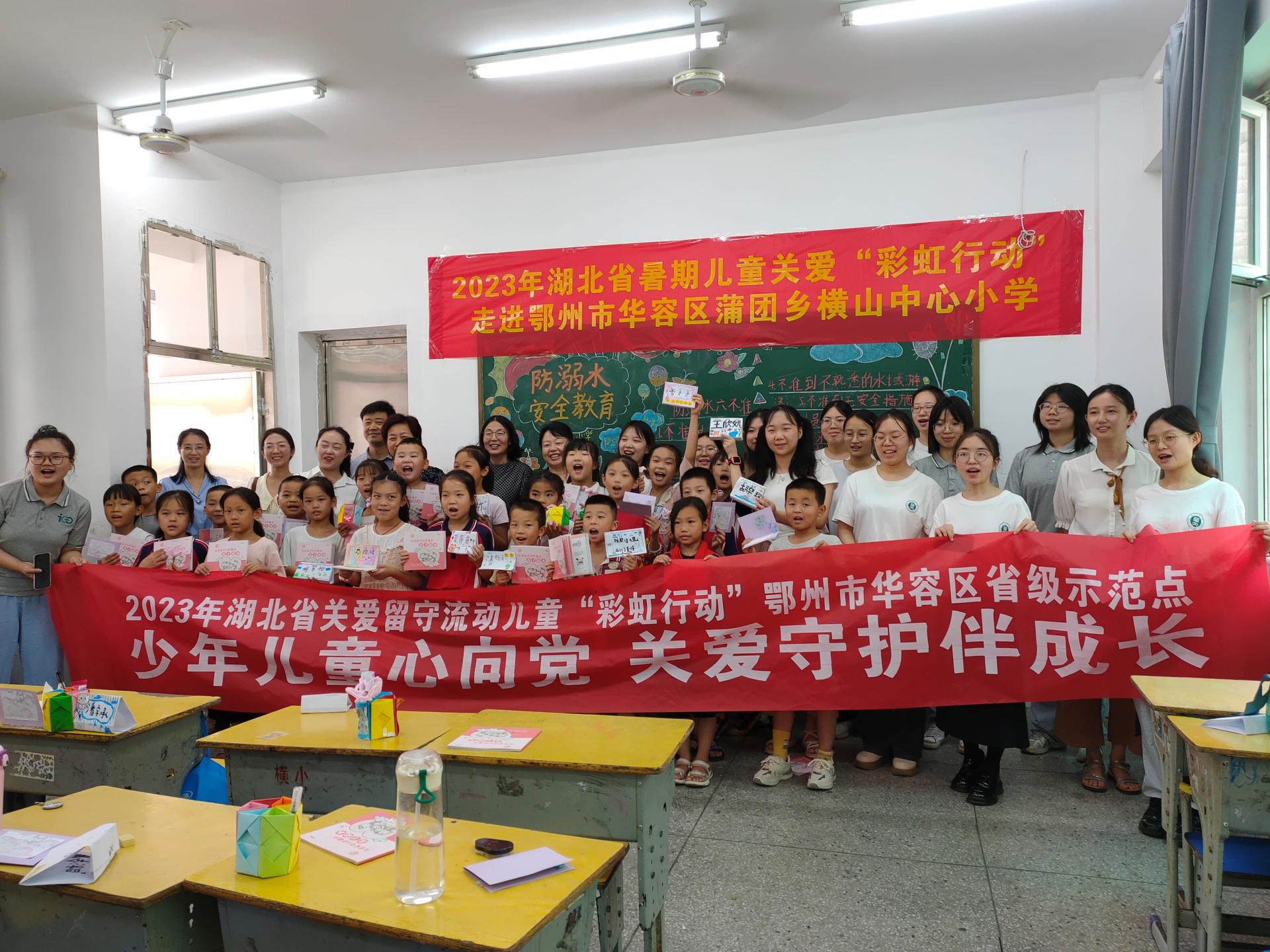 教育学院融媒体中心讯(通讯员 崔馨语)7月19日上午,湖北省妇联党组成员、副主席彭艳红,湖北省儿童中心主任刘宏文,湖北省儿童中心项目部部长赵茸,湖北省儿童中心项目部王维、官晔一行赴鄂州市华容区蒲团乡横山中心小学“彩虹行动”省级示范点开展走访慰问活动。鄂州市妇联党组书记、主席吕爱兰,鄂州市妇联副主席季慧及华中师范大学教育学院“彩虹行动”暑期实践队鄂州队全体成员参加。