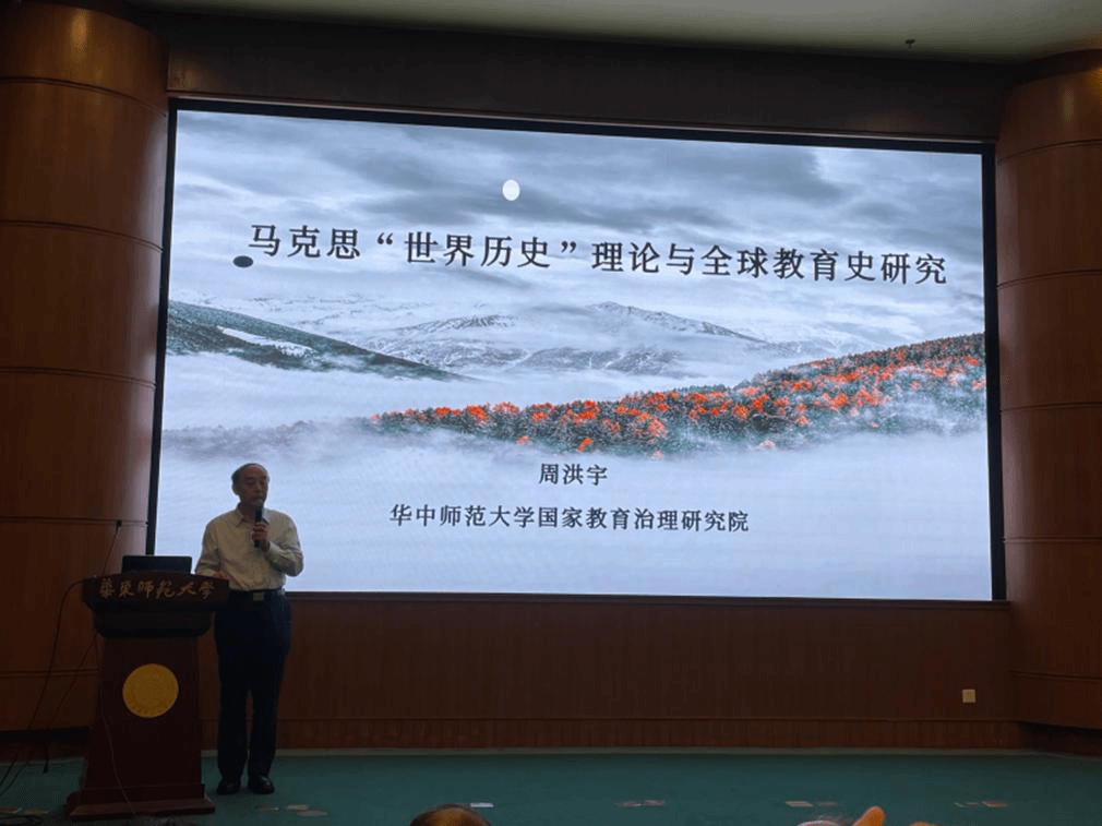 9月22日上午的大会上,十三届全国人大常委、中国教育学会副会长、华中师范大学教育学院教授、教育治理研究院院长周洪宇受邀作了题为《马克思“世界历史”理论与全球教育史研究》的报告,指出“全球视野”是现代教育史学的应然特征,我国教育史学科建设须形成自觉的全球教育史观,并在讨论问答环节精彩回答了北京师范大学黄嘉莉教授的提问。