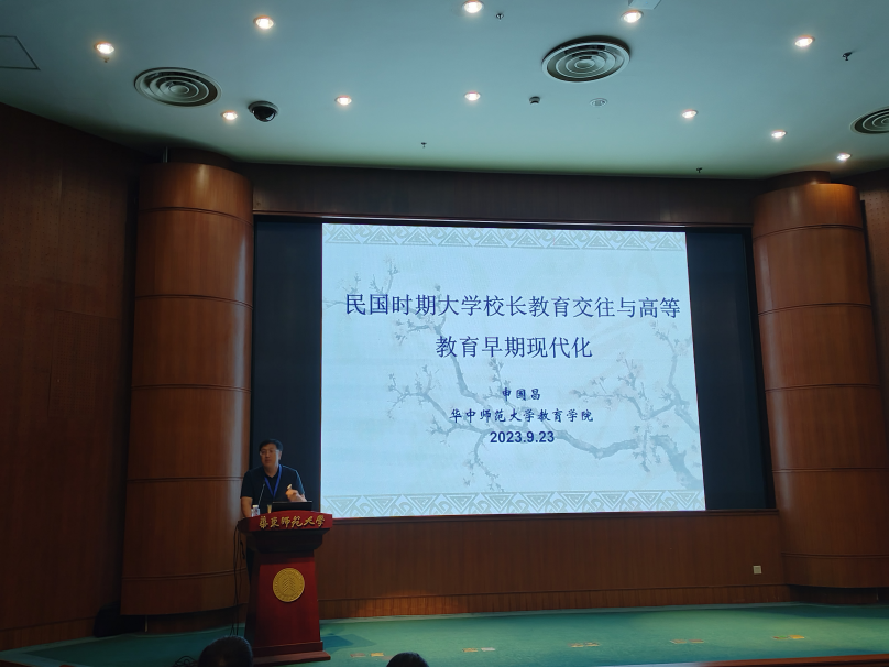 23日上午的大会上,中国教育学会教育史分会副理事长、我院申国昌教授受邀作了题为《民国时期大学校长教育交往与中国高等教育早期现代化》的主题报告,主要从民国大学校长教育交往活动概况及其推动中国高等教育早期现代化的实践逻辑和历史贡献三个方面展开阐述,获得与会专家学者的高度评价。