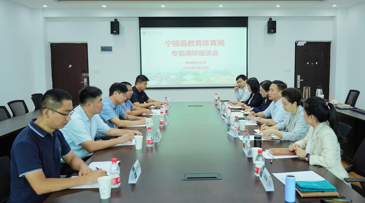 教育学院融媒体中心讯(通讯员 吴姗姗 李玉凤)2023年9月22日,宁陵县教育体育局局长高毅、基础教育股股长高涛及教研室主任刘广远等一行来我院调研交流。教育学院党委书记陈雪玲、院长雷万鹏、教育经济与管理研究所教授蒲蕊等参会交流。会议在田家炳909学术报告厅举行,由陈雪玲主持。