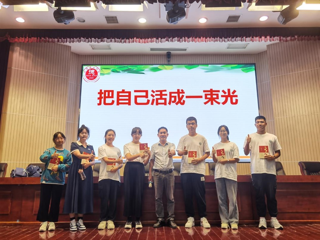 刘秀祥将传记《坚信奋斗的力量——最美教师刘秀祥》赠与新生代表,并对全体新生深情寄语:“人生而平凡,做而伟大,我们怎样,未来的中国就怎样,要把自己活成一束光。”