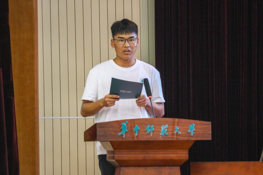 “打开录取通知书的那一刻,我看到华师校门在我眼前巍然矗立,我的心中感到无比喜悦与自豪。”新生代表、2023级本科生尹宝玄讲述了自己初识华师、来到华师、筑梦华师的动人故事,表示在大学中将主动投入学习,积极培养兴趣,全面提高素质,为成为一名优秀的特殊教育老师而努力奋斗。