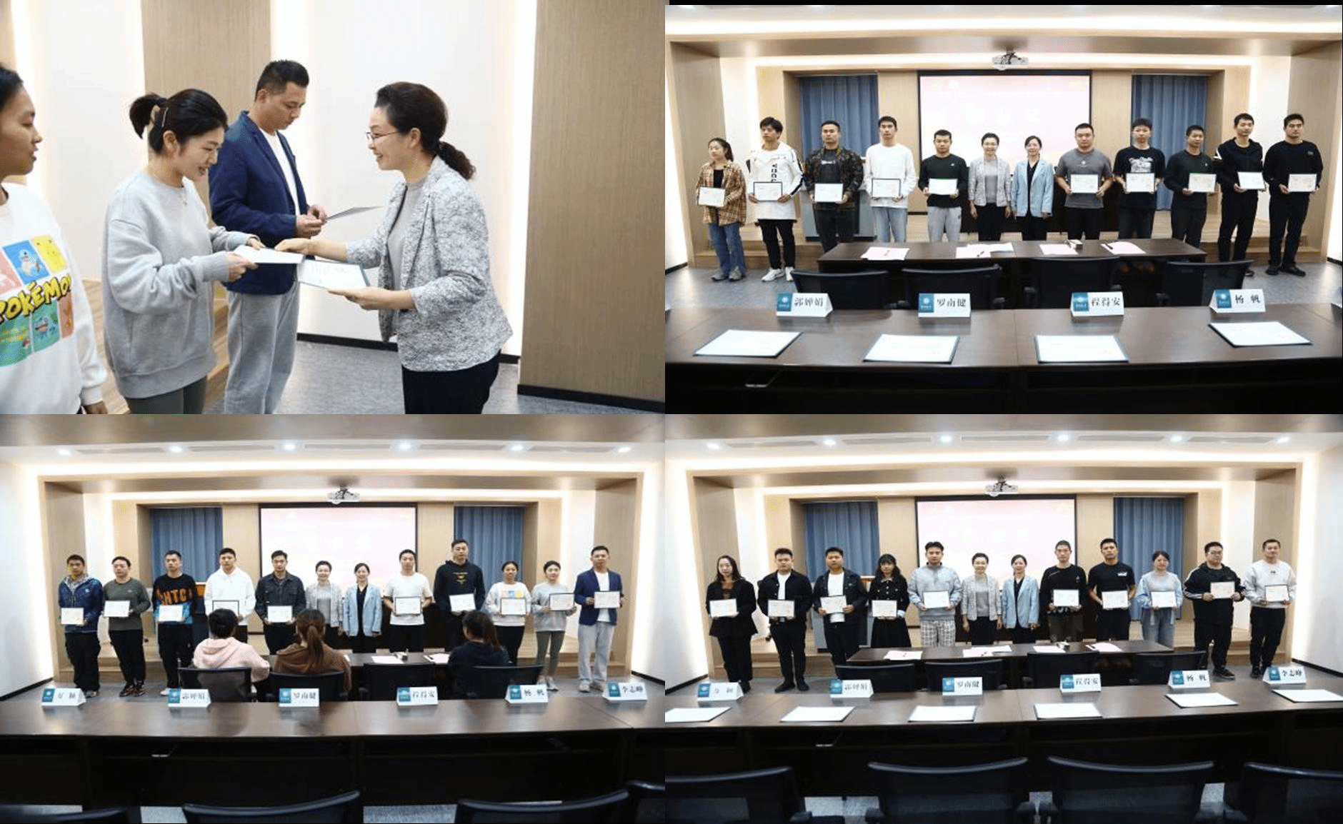 陈雪玲为学员们颁发结业证书,和苏春艳一同与培训班学员拍照留念。