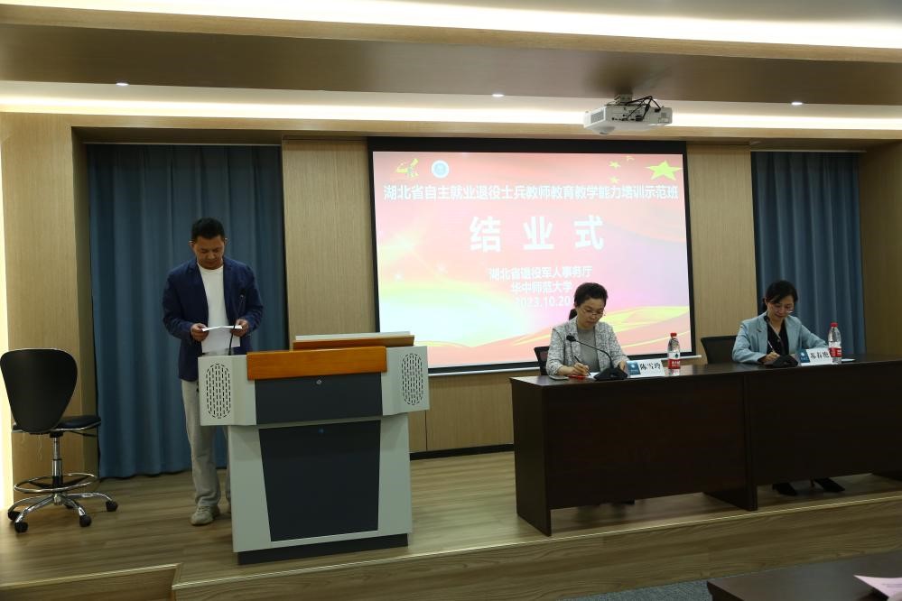 本科教学办公室讯(通讯员 买孜亚·赛米 史雅丹)2023年10月20日,湖北省自主就业退役士兵教师教育教学能力培训示范班结业式在华中师范大学田家炳教育书院601报告厅顺利举行。华中师范大学教育学院党委书记陈雪玲、示范班班主任以及示范班全体成员出席结业式,结业式由教育学院党委副书记苏春艳主持。