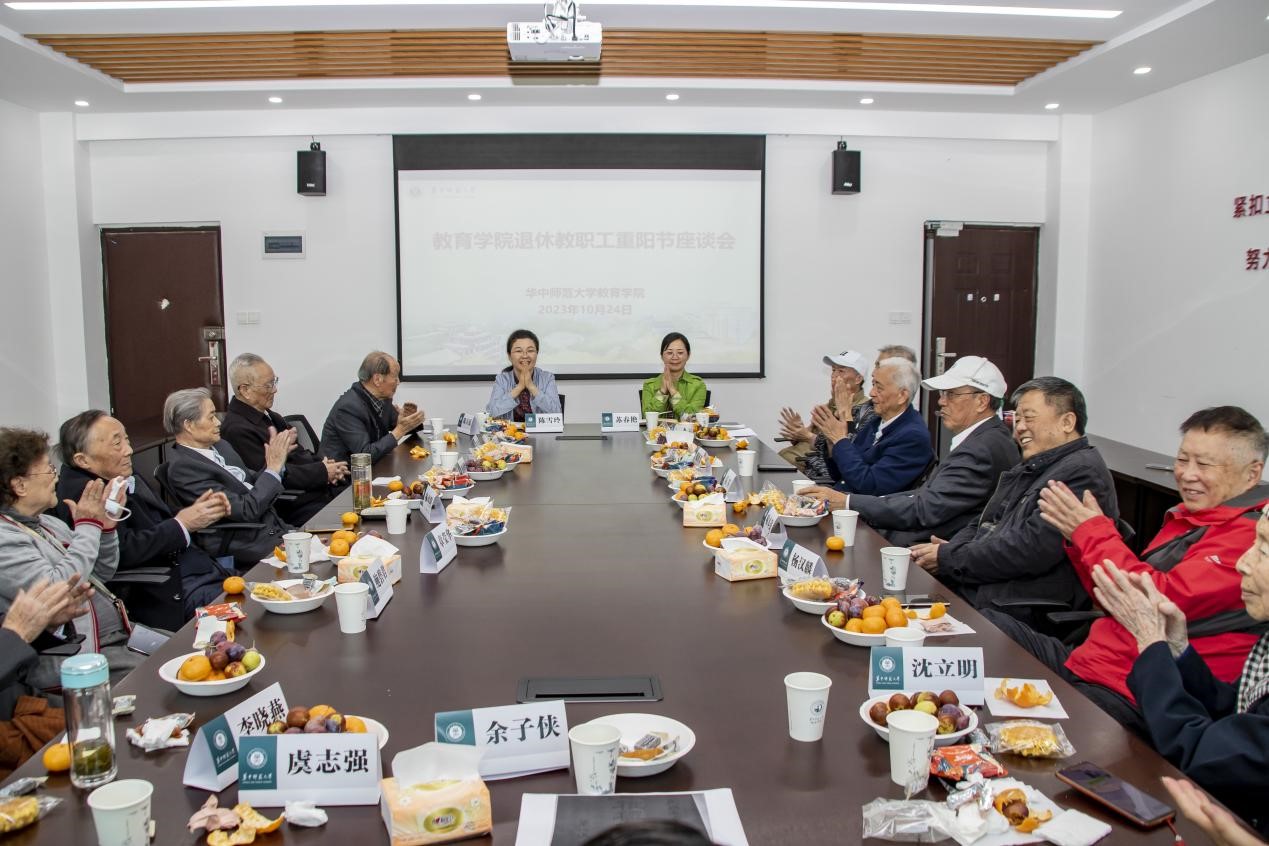 最后,杨汉麟教授代表全体离退休老同志,祝愿教育学院欣欣向荣,更上一层楼!本次重阳节慰问茶话会在欢声笑语中圆满结束。