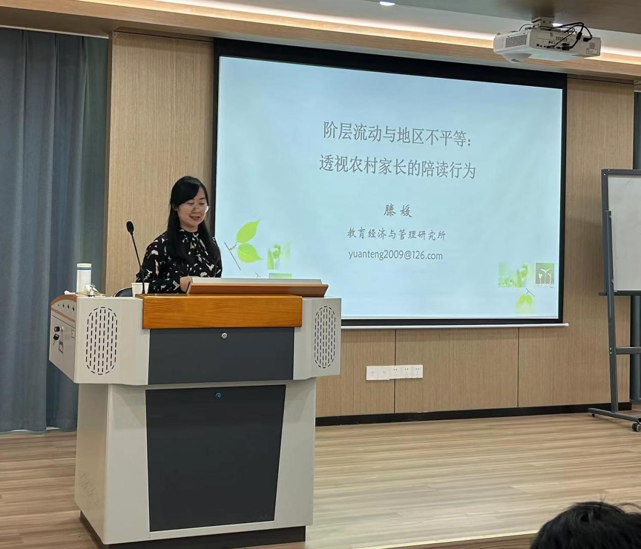 教育学院融媒体中心讯(通讯员 李冰 黄奕扬)2023年11月3日12:30-13:30,教育学院第48次学术午餐会在田家炳601报告厅顺利举行。教育学院滕媛博士作题为《阶层流动与地区不平等:透视农村家长的陪读行为》的学术报告,师生代表共60余人参加,会议由陈彬教授主持。