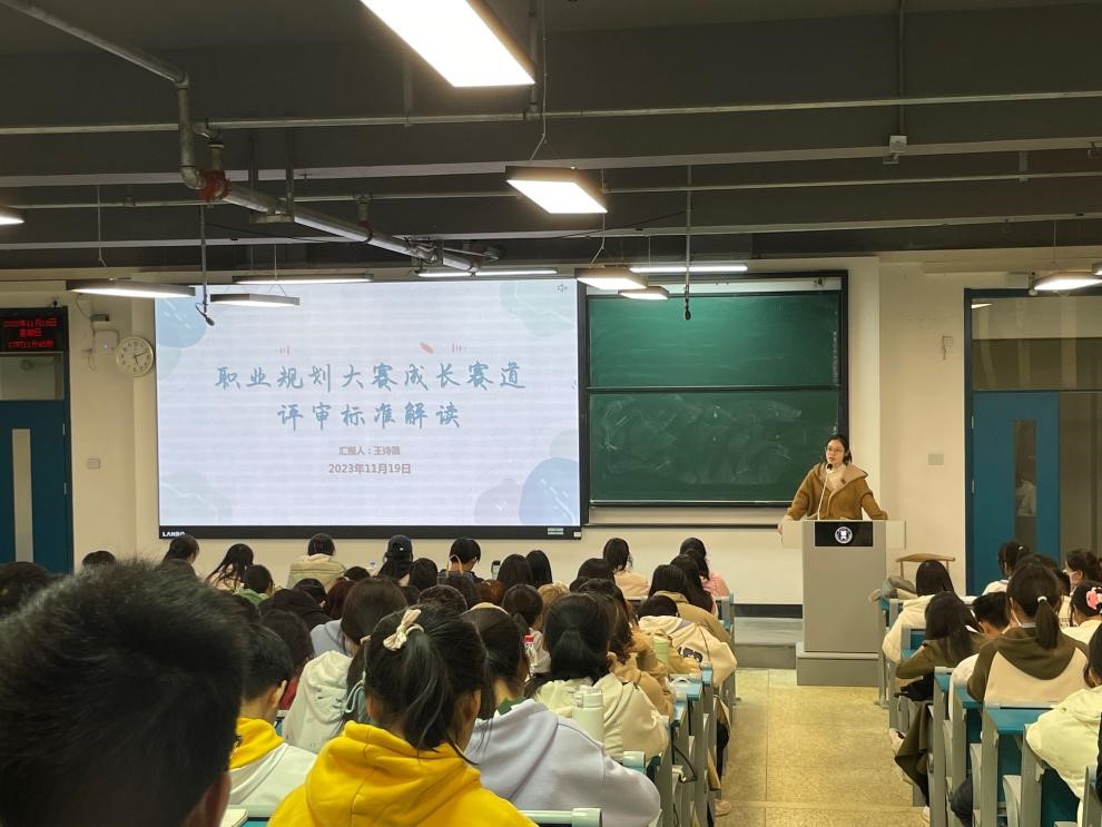 11月20日,2023级辅导员王诗薇针对职业生涯规划书的撰写技巧开展专题指导。课堂现场,王诗薇以生动的语言、丰富的案例和实用的技巧为学生进行了深入细致的讲解,为撰写高质量职业生涯规划书提供了有力支持。她指出,同学们应充分了解自己的兴趣、优势和价值观,制定具有创新性、可行性和发展潜力的职业规划。