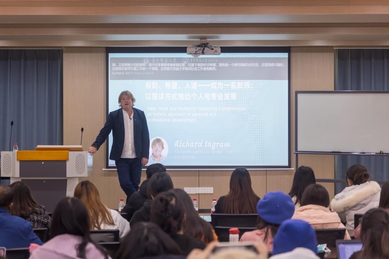 教育学院融媒体中心讯(通讯员:李珂瑜 刘馨雨)2023年12月5日下午,英国邓迪大学教育与社会学院Richard Ingram教授在田家炳楼601报告厅举办了主题为“帮助、希望、人道——成为一名教师:以整体方式推动个人与专业发展”的学术讲座。教育学院、社会学院、国际文化交流学院的师生代表参加了本次讲座,讲座由教育学院苏慧副教授主持。