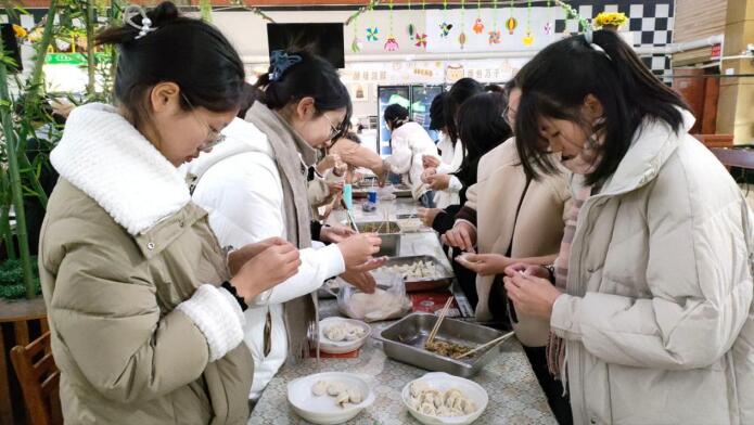 教育学院融媒体中心讯(通讯员 魏银莉)岁寒又冬至,团圆正当时。12月22日下午,由2023级本科生生活心理部门主办的“包团圆饺子,习传统文化,展来年期冀”活动在东二食堂二楼顺利举行。东二食堂部分工作人员、2023级本科生辅导员王诗薇、蔡亚男以及年级学生参与活动。本次活动分为喜气洋洋包饺子、热气腾腾吃饺子、其乐融融做游戏三个环节。