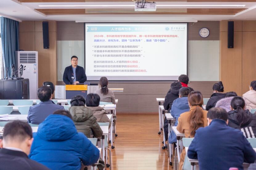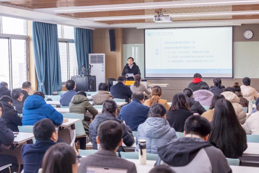 副院长田友谊布置期末考试、选课等期末教学工作安排和要求,传达了新一轮本科教育教学审核评估工作精神和五个阶段的具体要求,结合国家一流课程申报、教材建设、规章制度修订等对下一阶段本科教育教学的八项重点工作进行了部署。