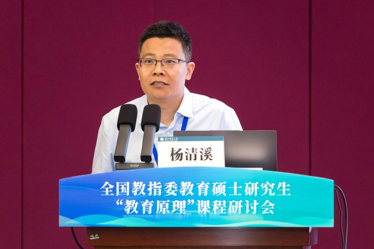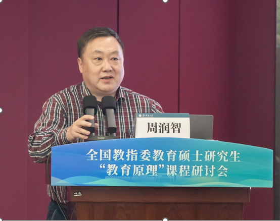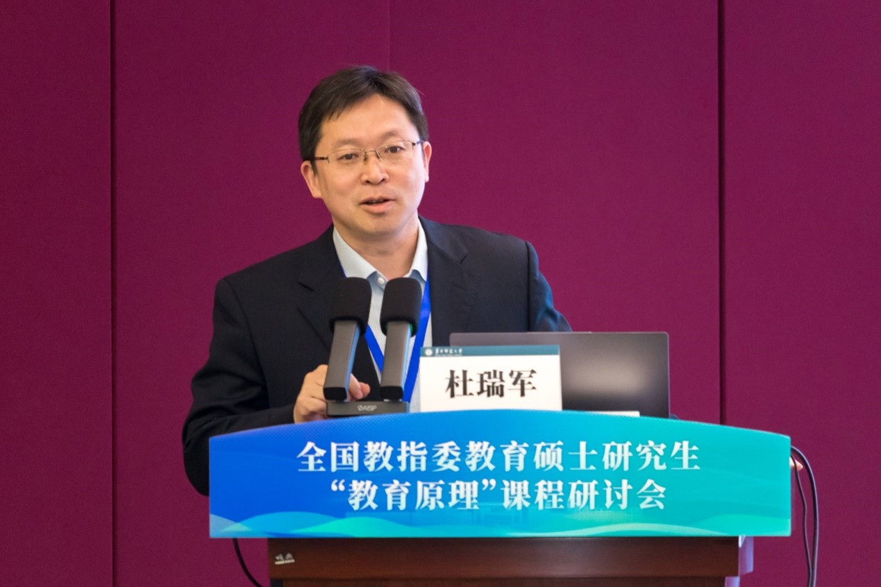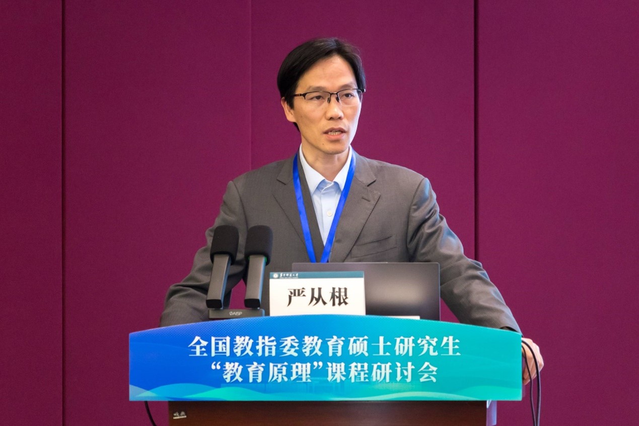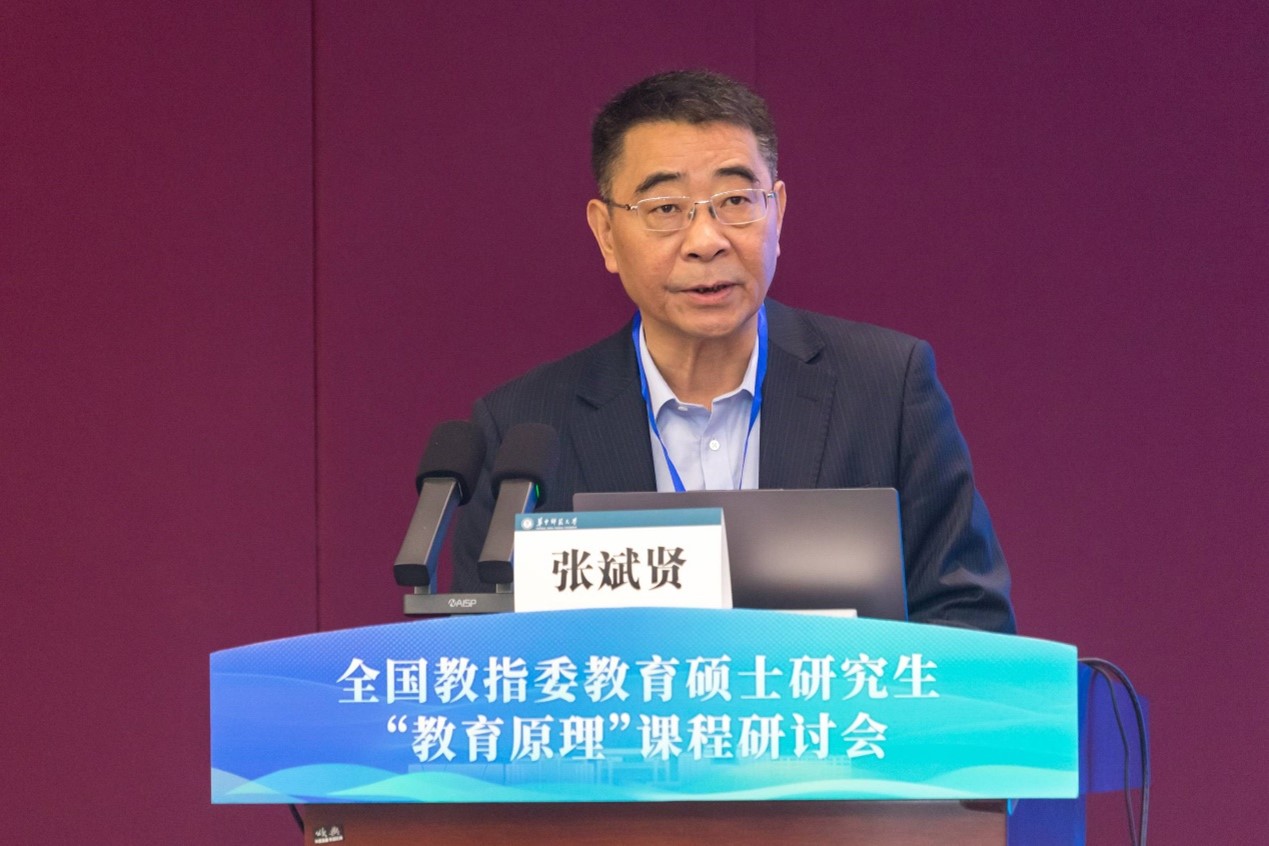 全国教育专业学位研究生教育指导委员会秘书长张斌贤代表全国教育专业学位研究生教育指导委员会对研讨会顺利召开表示祝贺,并对会务组的精心筹备表示感谢。在致辞中,他表示“教育原理”课程建设之于教育硕士培养至关重要。该课程涵盖教育的一系列基本概念、基本问题、基本原理,是所有教育类课程的基础,教学成效直接关乎教育硕士的培养质量。目前,“教育原理”课程依然存在理论教学与实践教学脱节、教学方式方法陈旧单一等诸多亟待改进之处,希望以此研讨会为契机,与会专家学者相互交流、彼此启发,积极为提高教学效果和人才培养质量建言献策。