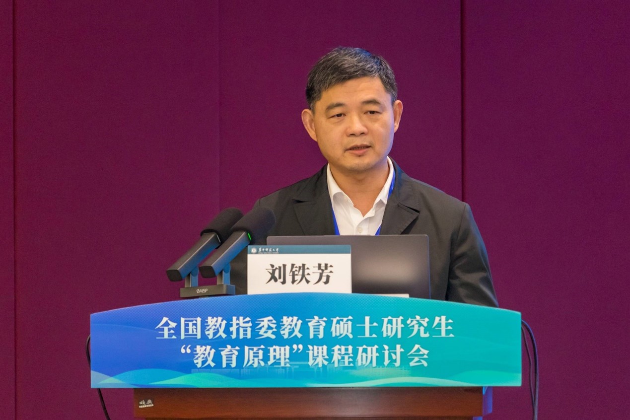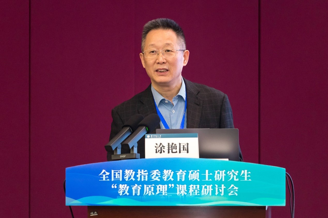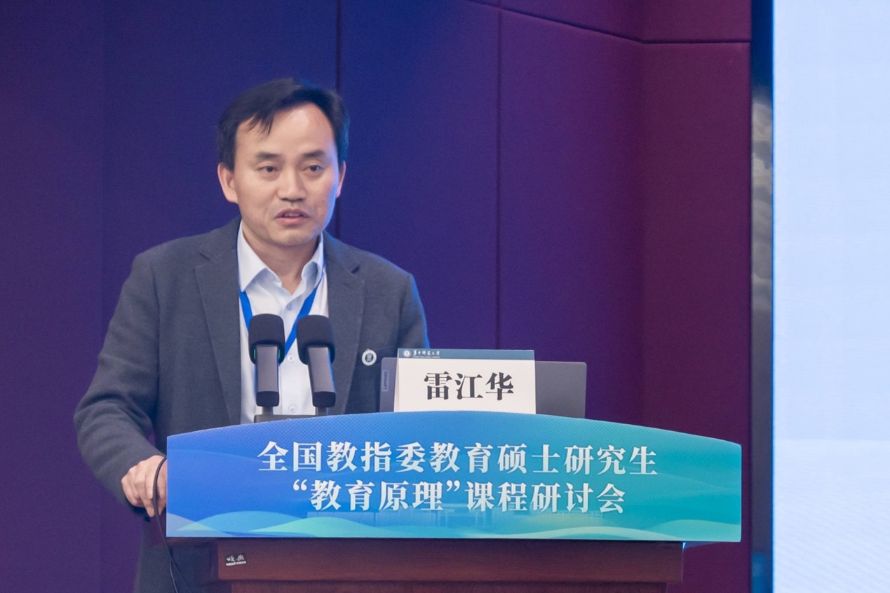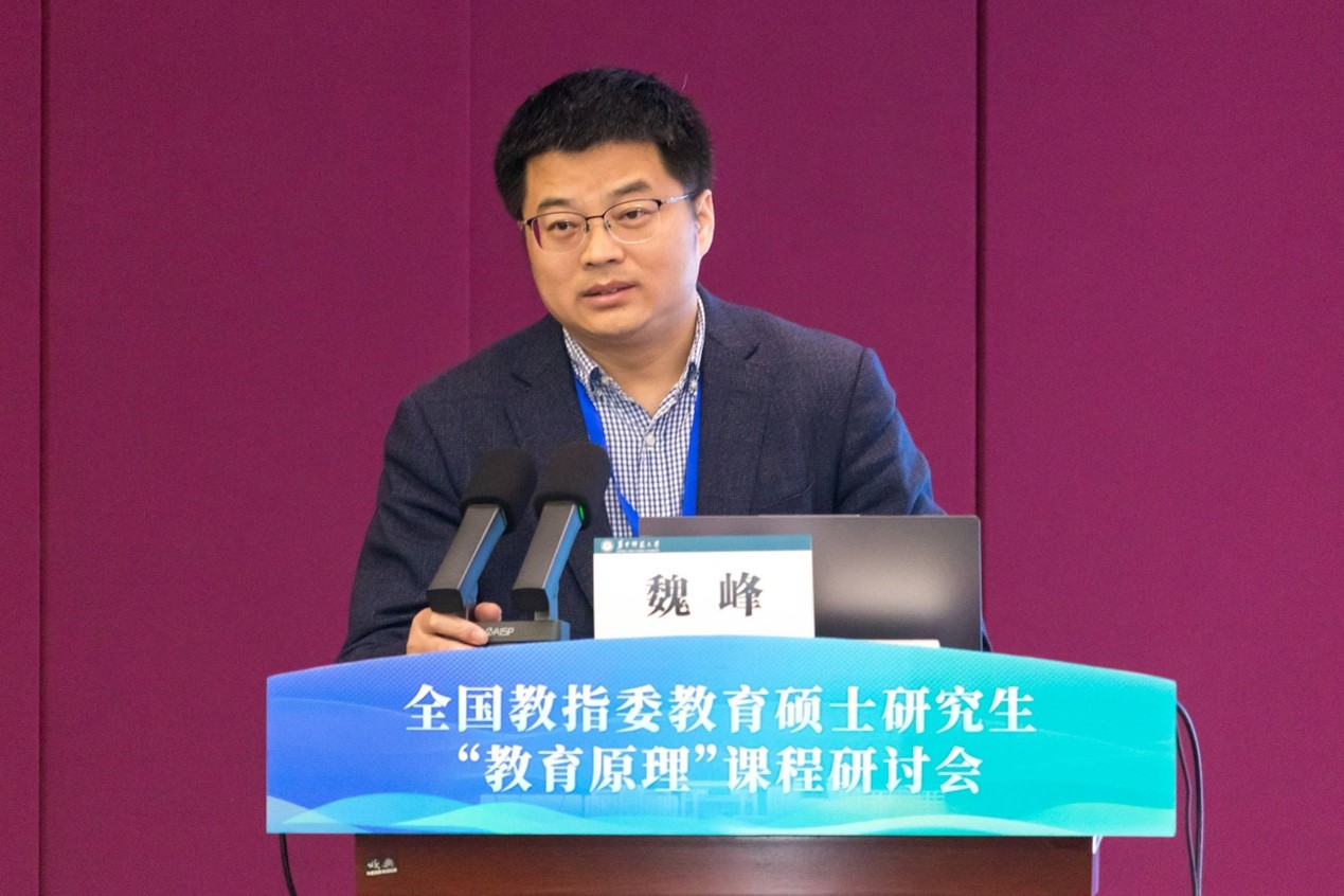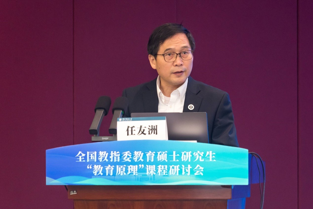 华中师范大学副校长任友洲在致辞中代表学校向与会专家学者表示欢迎,并表示,作为为国家和社会培养了60多万卓越教师和各行业优秀人才的师范大学,华中师范大学自1997年起,开始招收教育硕士研究生。27年来,学校从管理机制、培养方案、课程体系、师资队伍、教学平台等多方面积极改革创新,构建了具有华师特色的教育专业学位研究生培养模式。“课程建设”是研究生培养体系中最基础的环节,是高质量研究生教育的核心支撑。期待与会的各位专家集思广益,为教育硕士研究生“教育原理”课程建设贡献更多力量。