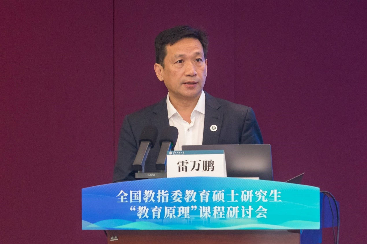 教育学院融媒体中心讯(通讯员 鲁长风)4月20日至21日,全国教指委教育硕士研究生“教育原理”课程研讨会在我校举行。来自北京师范大学、华东师范大学、华中师范大学、东北师范大学、西南大学、陕西师范大学、南京师范大学、湖南师范大学、华南师范大学等145所院校的240余名教育学科专家、研究生院和教育学院领导、“教育原理”课程任课教师等,聚焦教育硕士研究生“教育原理”课程建设,共话教育硕士研究生高质量发展。全国教育专业学位研究生教育指导委员会秘书长张斌贤、副校长任友洲出席开幕式并致辞。我校研究生院院长、教育学院院长雷万鹏主持开幕式。