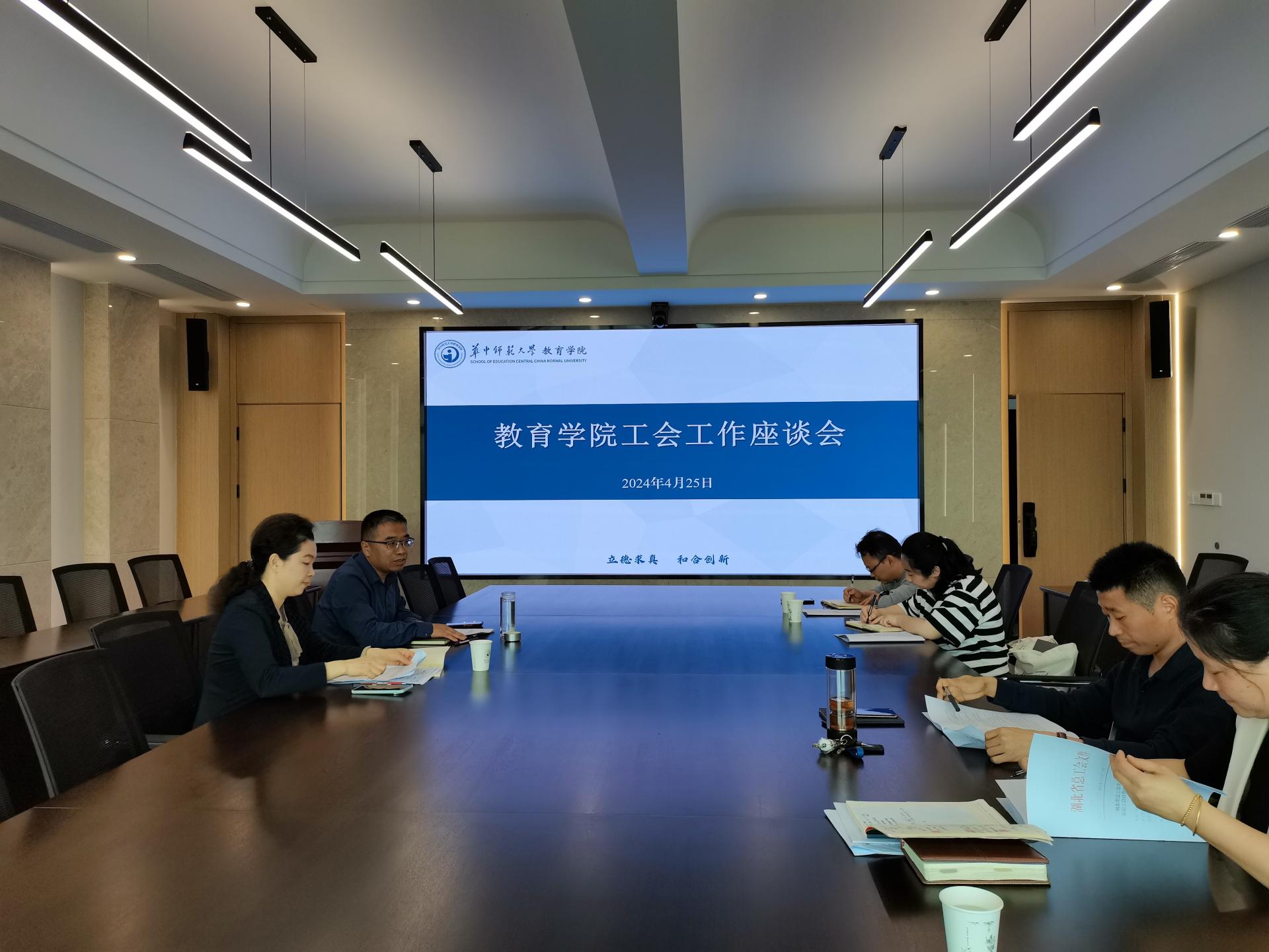 教育学院融媒体中心讯(通讯员 宫慧娜)4月25日上午,2024年教育学院工会工作座谈会在田家炳楼901会议室召开。教育学院党委书记陈雪玲、教育学院工会主席王建梁、副主席伍远岳、福利委员覃娟、青工委员尹国强、宣传委员宫慧娜等参加座谈。会议由院工会主席王建梁教授主持。