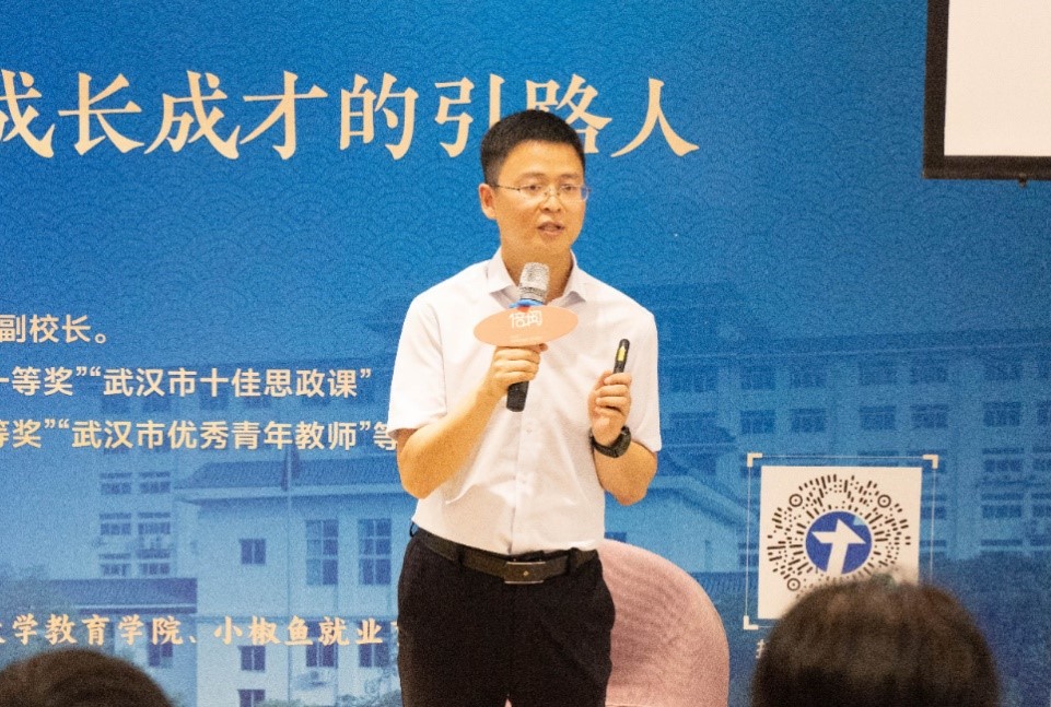 教育学院融媒体中心讯(通讯员 周文财 李珂瑜 王琪璁) 5月31日晚,“职引未来 逐梦青春”——“一线名师面对面”首场主题活动在华中师范大学一站式学生社区综合服务中心利群书社顺利举办。本次活动由华中师范大学党委学生工作部就业处主办,华中师范大学教育学院、小椒鱼就业育人工作室承办,特邀湖北省武昌实验中学副校长邓伟进行主题报告。教育学院党委书记陈雪玲、党委学生工作部就业处副处长饶艳萍、生涯发展与就业指导办公室老师卢雯出席活动,辅导员及师范生代表积极参加。本次活动由教育学院党委副书记王璐主持。