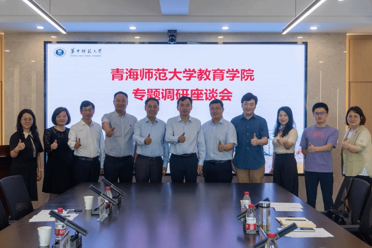 教育学院融媒体中心(通讯员 刘馨雨 张芬)2024年6月5日上午,青海师范大学教育学院专题调研座谈会在田家炳901会议室顺利举行。青海师范大学教育学院院长李晓华、副院长张春海、院长助理包万平、学前教育教研室主任马亚玲、教育技术教研室教师保吉春,华中师范大学教育学院党委书记陈雪玲,教育学院副院长雷江华、副院长田友谊,人工智能教育学部系主任罗恒,教育学院教师代表胡瑞、吴航、邹红军参加会议,座谈会由雷江华主持。