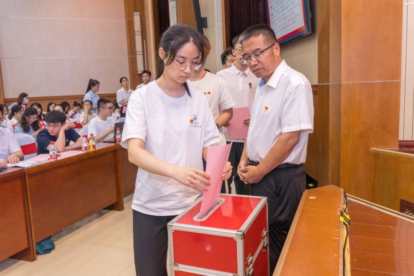 投票环节,参会正式党员投出了自己神圣而庄严的一票。计票期间,全体党员集体观看了《榜样8》专题节目。