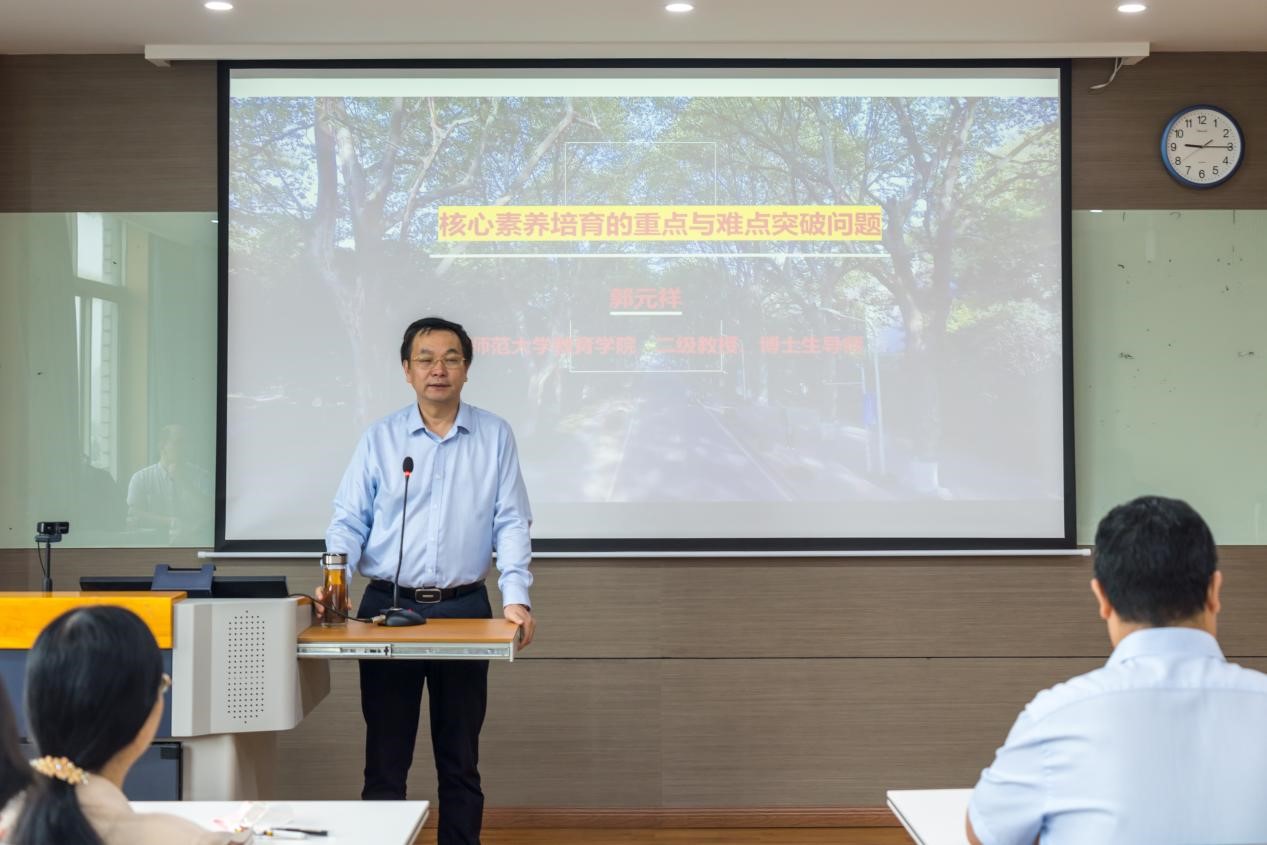 郭元祥教授作题为核心素养培育的重点与难点问题的主旨报告,指出核心素养的培育对促进基础教育的高质量发展和推动立德树人根本任务的真正落地至关重要。他深刻地阐述了核心素养这一概念在国内外的发展历程,指出核心素养的生成过程就是知识结构化向知识观念化进阶的过程,并从知识观、学习观等方面重新进行分析与架构,他主张通过知识的结构化和观念化,让学习在学生身上发生,来改变学生的心智结构乃至价值观、世界观,最终达成培育学生核心素养的目标。他从本学科最核心的内容作阐释,带领教育博士们扩大知识边界,为研学活动奠定了精彩的开端。