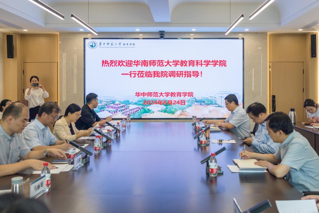 教育学院融媒体中心讯(通讯员 张宇 张芬)2024年6月24日-25日,华南师范大学教育科学学院一行调研交流在华中师范大学教育学院顺利举行。华南师范大学教育科学学院副院长葛新斌、曾文婕,研工办主任王晓隆及20名教育博士研究生参加本次调研,华中师范大学教育学院院长雷江华、副院长田友谊,郭元祥教授,博士生教学秘书张汶军参加研学开幕式,开幕式由田友谊主持。并顺利举办了主旨报告和两院教育博士座谈会。