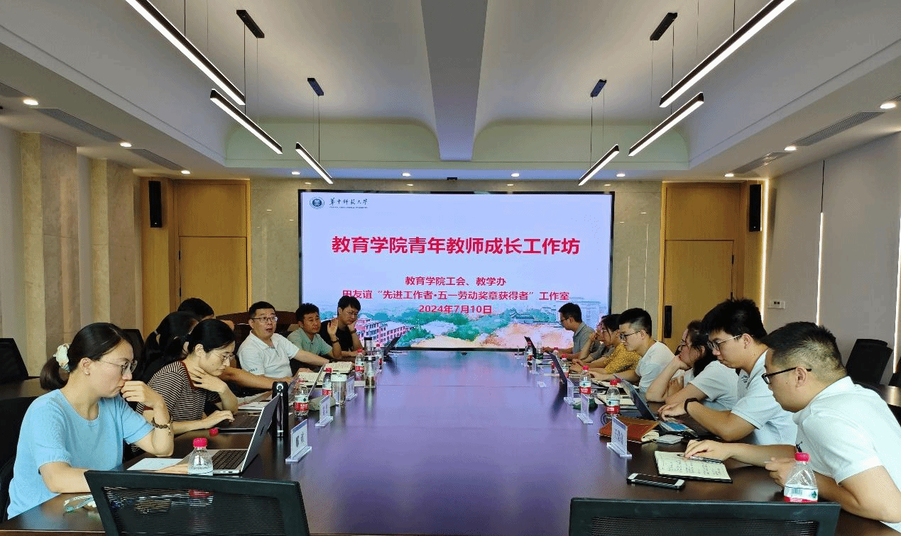 教育学院融媒体中心讯(通讯员:刘馨雨 詹思迪)7月10日,为提高青年教师教学水平,促进青年教师成长,由学院工会、教学办、“先进工作者·五一劳动奖章获得者”工作室共同主办的青年教师成长工作坊在田家炳901会议室举行,校青年教师教学竞赛一等奖获奖者伍远岳作经验分享。副院长、“先进工作者·五一劳动奖章获得者”工作室主持人田友谊和学院青年教师参会,工作坊由副院长郑刚主持。
