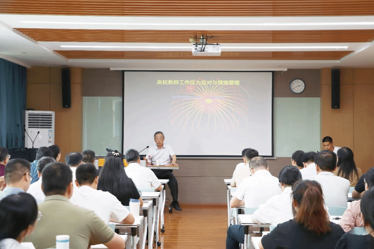 刘华山深入阐述了压力的定义、认知评估机制、以及压力与身心健康之间的紧密联系。他指出,个人在面对压力时,通过认知评估将压力事件转化为压力感,这一过程涉及事件的相关性、威胁性及个人资源的评估;压力对身心健康既有积极作用,也有消极影响。他从工作性质与工作对象、工作环境、职业发展、工作效能、自我控制、利益竞争与人情社会、管理压力、工作限期等八大维度系统分析高校教师面临的压力来源,并提出培养正确的压力观、增强工作的胜任力、培植积累心理资源和社会资源等相应的应对策略。刘华山特别强调了情绪管理的重要性,提倡通过承认、宽慰、宣泄等多种措施处理紧张与消极情绪,并引导大家通过自我提问进行认知调整,以更理性的视角看待压力,积极从压力中寻找成长的机会。