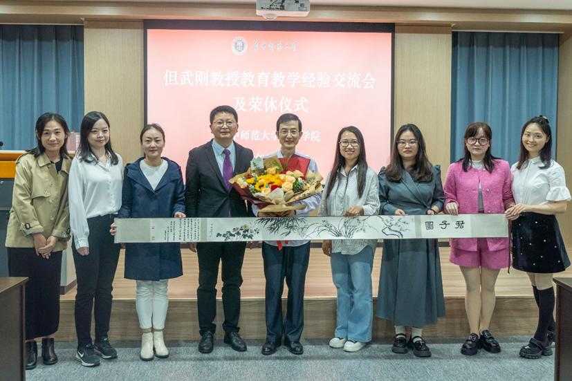 为了表达对但老师荣休的祝贺,年轻教师代表白颖颖和学生代表何芳馨向但老师敬献鲜花和礼物。与会师生和但老师合影留念,在热烈的掌声与温馨的氛围中,但武刚教授教育教学经验交流会及荣休仪式圆满结束。