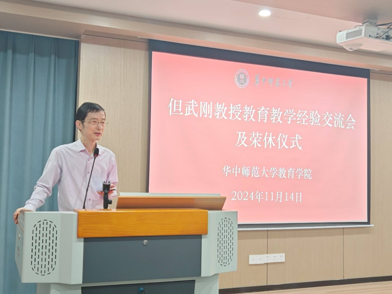 教育学院融媒体中心讯(通讯员 熊怡君 罗鸿妮)11月14日下午,教育学院课程与教学研究所的但武刚教授教育教学经验交流会及荣休仪式于田家炳教育书院601会议室隆重举行。教育学院党委书记陈雪玲、荣休教师但武刚、教师教育学院汪丽梅老师、课程与教学研究所部分教师以及硕士、博士研究生参加此次活动,活动由课程与教学研究所所长罗祖兵主持。