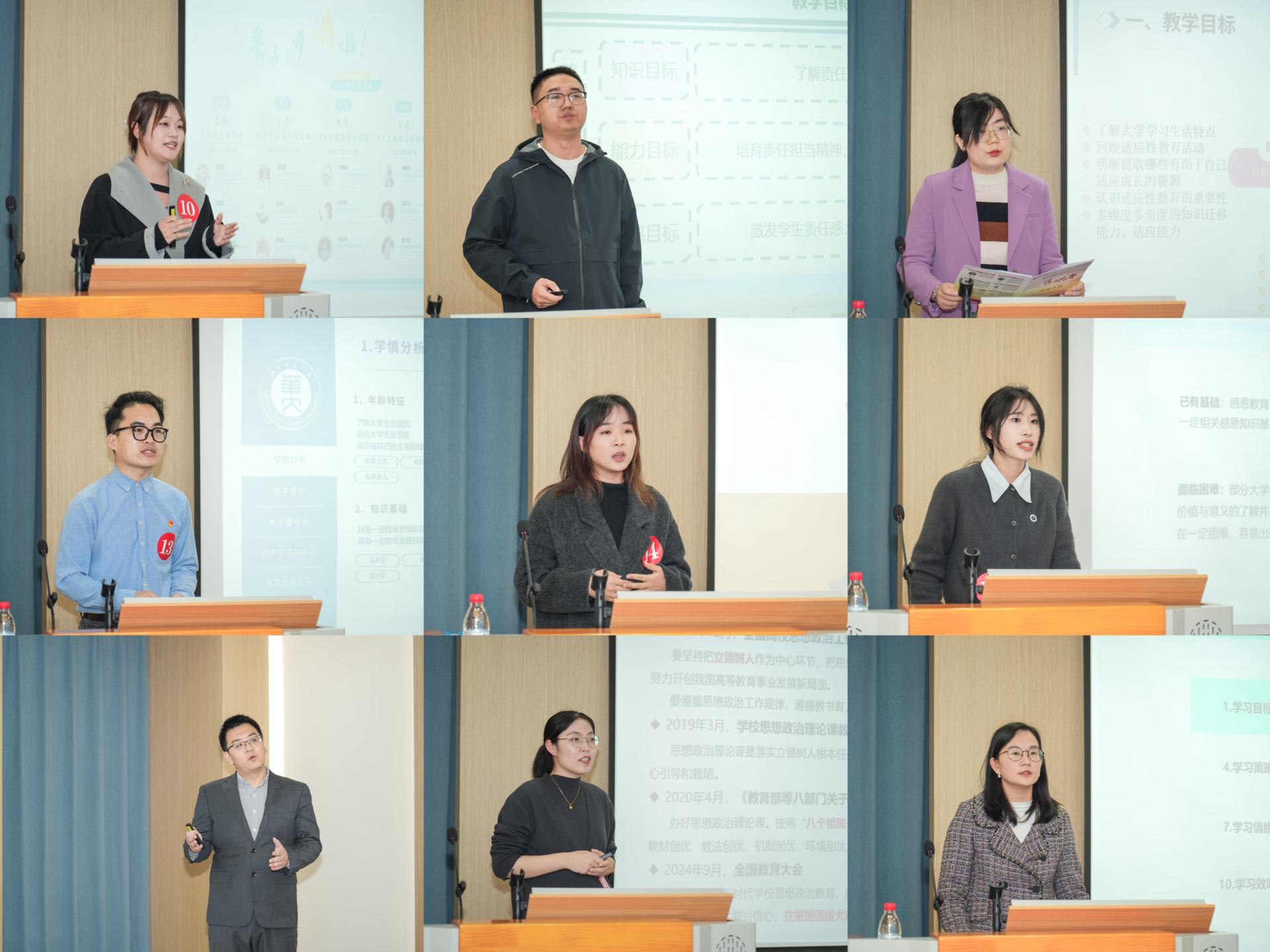 经过各单位推荐,本次比赛共有18名专、兼职辅导员参赛,分三轮进行。参赛选手在《大学生成长主题教育》课程大纲中规定的16个专题中自选主题,从教学目标、教学内容、教学方法和教学过程等方面阐述课程设计思路。