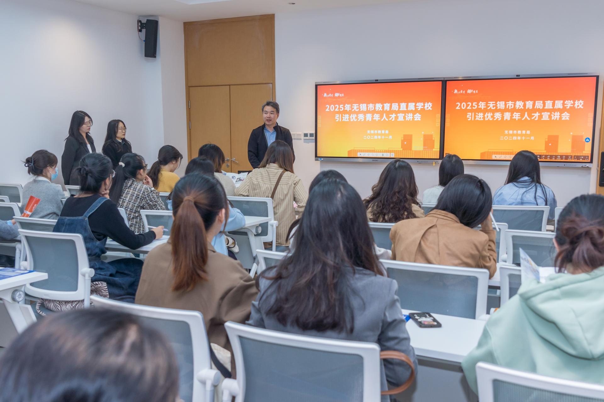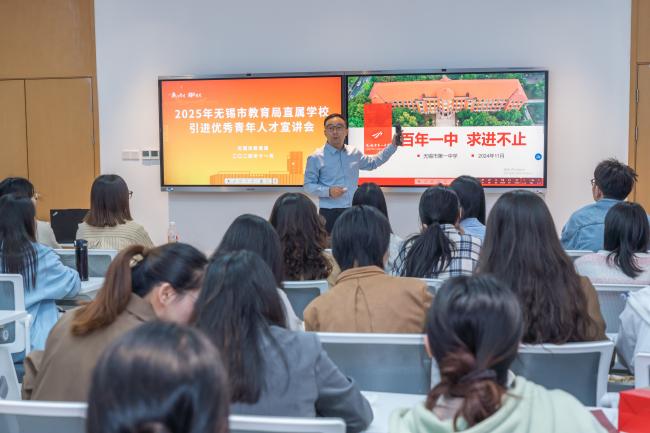 无锡市第一中学教育集团、无锡市辅仁高级中学等12所学校的校长及教师代表进行宣讲,详细介绍了各自学校的办学理念、师资力量、教学设施以及发展前景,并分享了在教育岗位上取得的成就和经验。宣讲内容生动具体,既展现了无锡市教育的独特魅力,也表达了各学校对优秀青年人才的热切期盼。