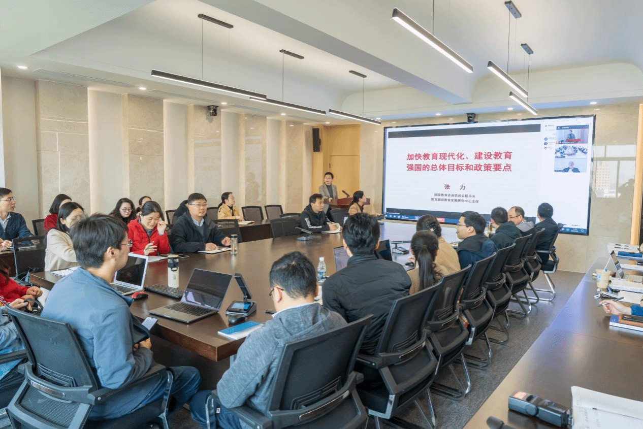互动交流环节,张力主任围绕教师们提出的如何理解高等教育在教育强国建设中的战略引领作用,如何解释教育强国的理想和现实之间的矛盾等问题作出详细解答。