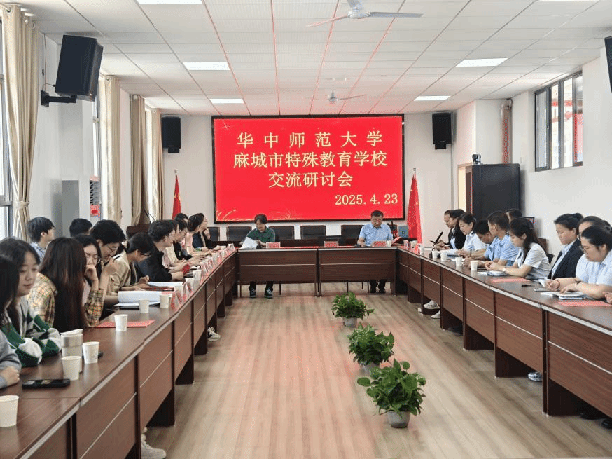 参访结束后,双方于四楼会议室举行座谈交流会。高校长代表全校师生热情致欢迎词,对华中师范大学郭春娥一行的到来表示热烈欢迎,他指出,希望未来双方能加强交流,期待华师教育学院输送更多更优秀的人才。华中师范大学教育学院党委书记陈雪玲致辞,她表示,在校工会的领导和支持下,特殊教育系作为武汉市“巾帼文明岗”在教学、科研、社会服务等方面取得了优异成绩,培养出了一批又一批优秀的特殊教育人才。麻城特校的优秀教师们同样用行动诠释了特殊教育工作者的责任与担当,用细腻和爱心投身特殊教育,展现了新时代教师的风采。她强调,特殊教育是一项富有爱心与责任的事业,期待双方在此领域深入合作、共创佳绩。