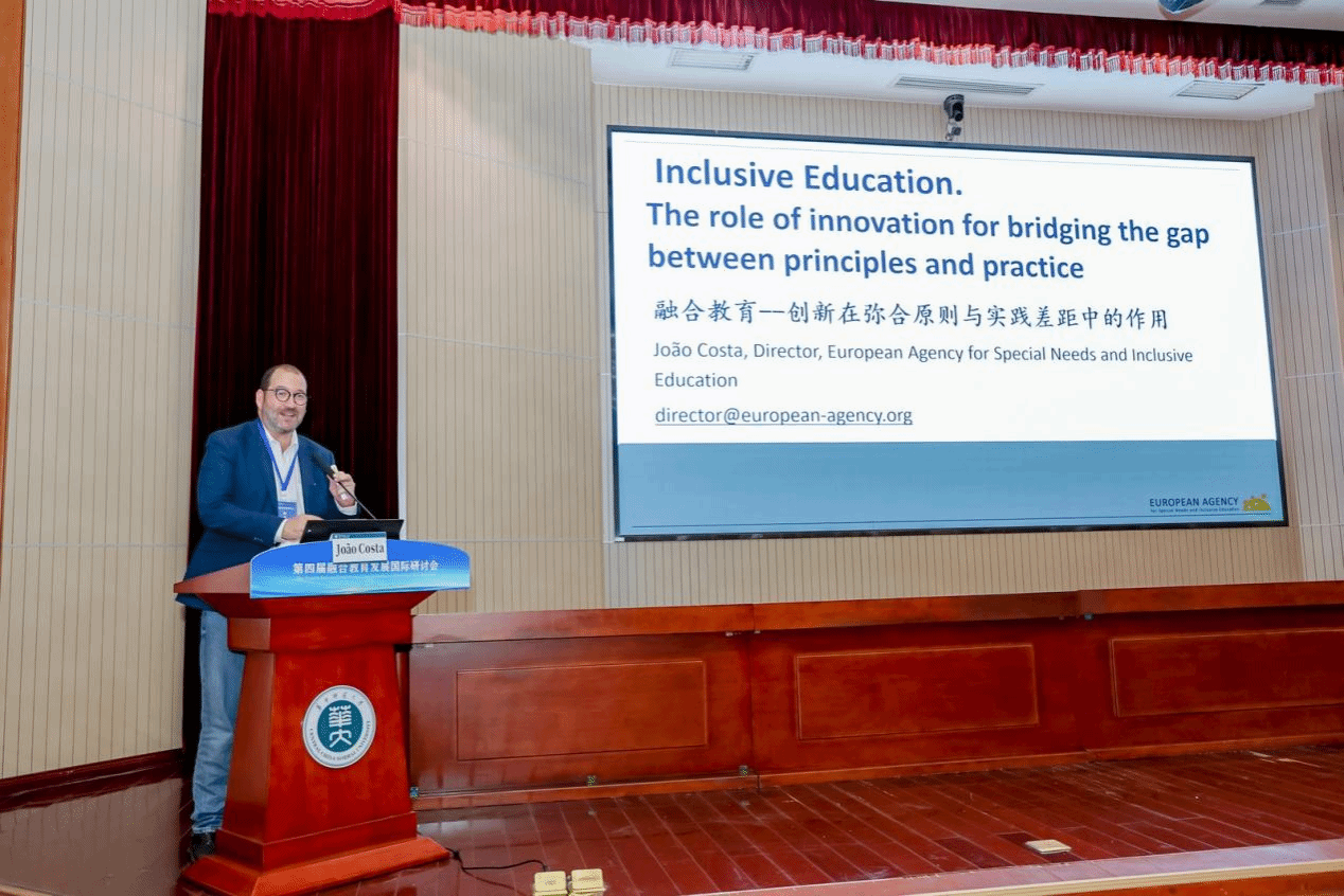 若昂·科斯塔(João Costa)分享的主题为“融合教育——创新在弥合原则与实践差距中的作用”。他介绍了融合教育的关键概念与原则,分析了当前融合教育实施面临的主要挑战,包括学业表现下滑、辍学率上升、教师培训不足、社会分化、经费机制和数据收集等问题;并提出了跨部门协作、统一课程与评估框架等弥合差距的建议,以及推进范式转型、将融合教育作为教育政策核心目标等行动倡议。