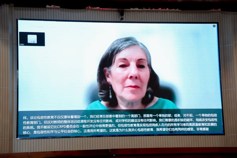 黛安·里奇勒(Diane Richler)分享的主题为“融合教育倡导:现实挑战与影响”,强调融合教育是构建包容社会的基石,是系统性积极变革而非渐进式改良。她指出,近八十年的法律演进夯实了融合教育的全球共识,然而现实中仍面临诸多挑战,如教育隔离现象广泛存在;并以加拿大为例,介绍立法保障、社会倡导和创新实践等推动因素,强调融合教育需彻底重构系统,倡导面向全体学习者的融合文化,为残疾学生提供精准支持,是全民优质教育,对建设包容、和平与公正社会至关重要。