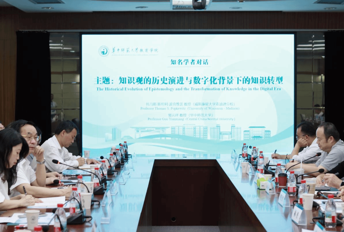 教育学院融媒体中心讯(通讯员 李喆 赵新琪 李先军)6月27日至28日,由华中师范大学教育学院主办,教育史与比较教育研究所承办,在逸夫国际会议中心举行的“教育历史、思想与变革的全球视野论坛”上,一场主题为“知识观的历史演进与数字化背景下的知识转型”的中外知名学者对话备受瞩目。美国威斯康星大学麦迪逊分校课程与教学系终身教授托马斯·斯坦利·波克维茨(Thomas S. Popkewitz)与华中师范大学教育学院教授、国家级高层次人才重大工程特聘教授郭元祥就此议题展开了深入交流。