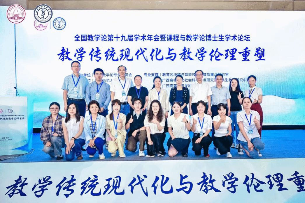 教育学院融媒体中心讯(通讯员 刘庆龙)2025年9月26日至28日,由全国教学论专业委员会主办、广西师范大学教育学部承办的“全国教学论第十九届学术年会暨课程与教学论博士生学术论坛”在广西桂林顺利召开。本次会议以“教学传统现代化与教学伦理重塑”为主题,聚焦数智技术赋能教学转型中的伦理挑战与路径创新,旨在探讨数智化技术深度赋能传统教学的现代化转型,直面技术嵌入教育实践引发的伦理震荡,构建数据驱动与人文关怀交织的新型教育生态。我院陈佑清教授等二十余名师生代表参会。