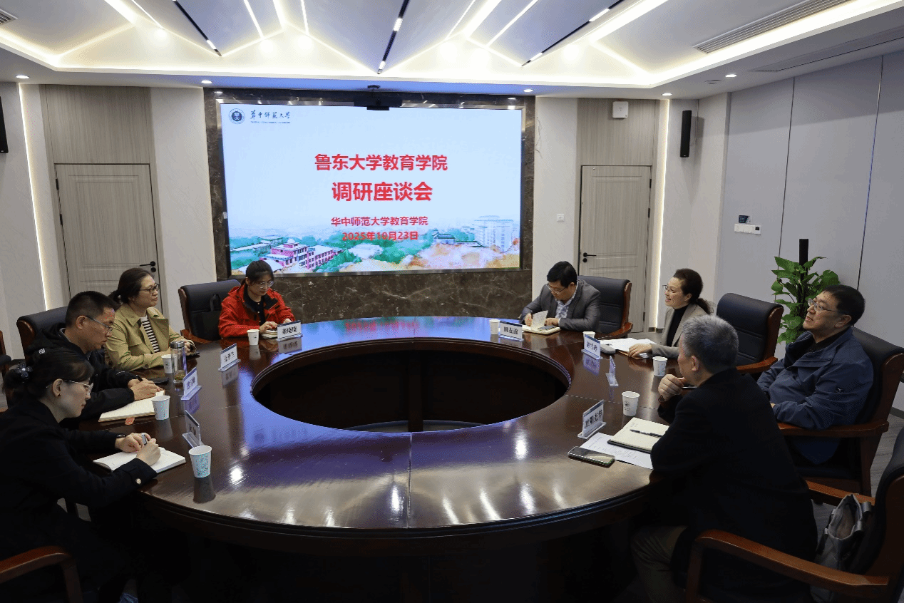 教育学院融媒体中心讯(通讯员 胡静)2025年10月23日下午,鲁东大学教育学院调研座谈会在田家炳楼403会议室顺利召开。鲁东大学教育学院执行院长魏雪峰、张香兰教授、徐娟教授、教育技术学系教师董晓晓,华中师范大学教育学院党委书记陈雪玲、副院长田友谊、国家教育治理研究院执行院长申国昌、高等教育研究所所长欧阳光华等参加会议,会议由田友谊主持。