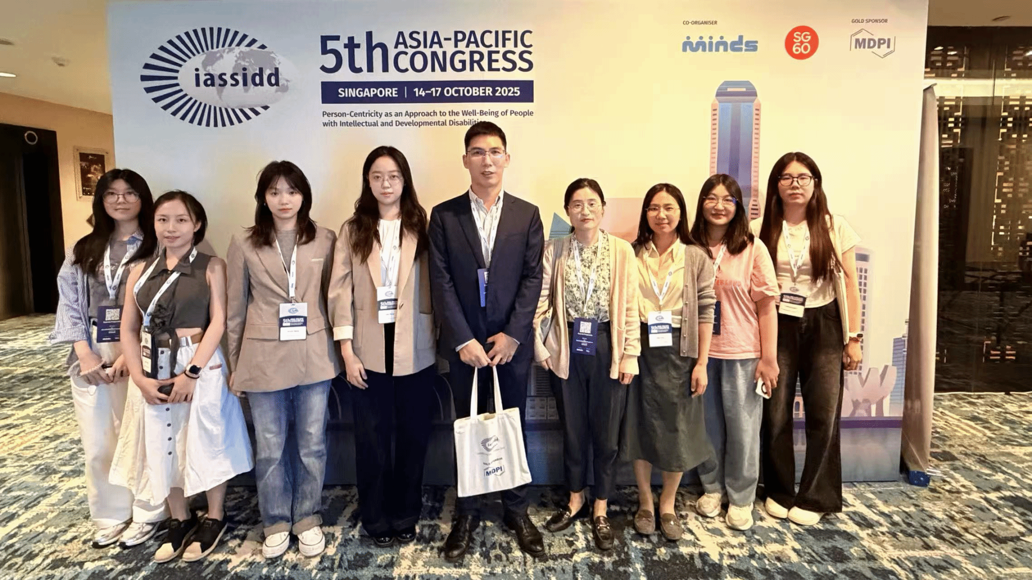 教育学院融媒体中心讯(通讯员 王姝雅 王佳熠)2025年10月14日至17日,国际智力障碍者协会亚太区大会(IASSIDD Asia Pacific Congress 2025)在新加坡召开。大会主题为“以人为中心的智力与发展性障碍者福祉”,来自50多个国家和地区的1200多名专家学者参与会议。我院特殊教育系徐添喜、苏慧、袁维老师及学生代表应邀参加会议,并作专题报告。