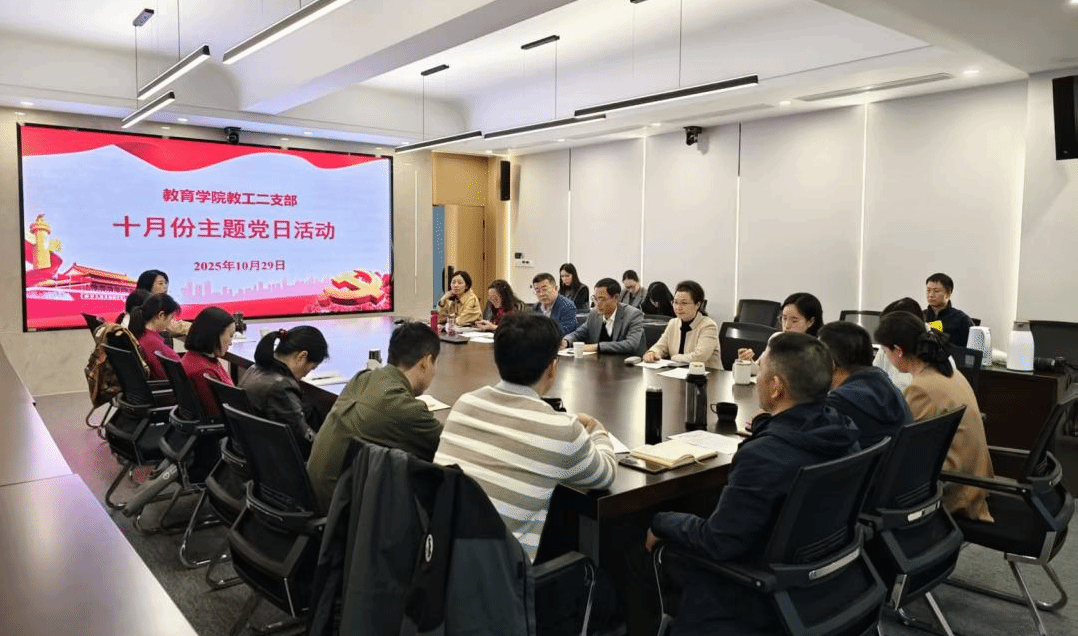 教育学院融媒体中心讯(通讯员 刘来兵)10月29日下午,教育学院教工第二党支部组织开展10月份主题党日活动。教工第二党支部全体党员教师参加,湖北省委教育工委组织处四级调研员杨作成、教育学院党委书记陈雪玲、党委组织部副部长兼党校副校长马珺列席指导,活动由学院副院长、教工第二党支部书记郑刚主持。