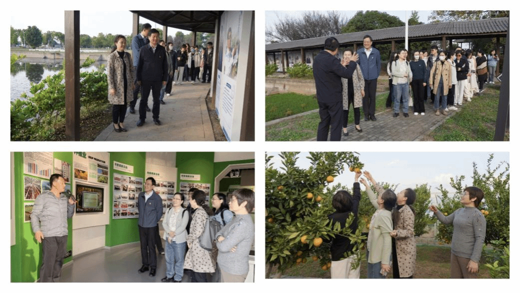 全体师生代表前往湖北省现代农业展示中心继续开展实践学习,湖北省现代农业展示中心吴胜兵处长热情接待并陪同参观。在工作人员的引导下,大家走访了多个代表性展区与试验基地,实地感受农业科技工作者“把论文写在大地上”的实践精神与为民情怀。在现代技术鱼塘,党员们了解到通过绿色高效循环系统实现“零排放”的先进养殖模式;在展示馆内,系统学习了湖北省农业发展的历程与成就;在试验田边,讲解员介绍了油麦菜、棉花等作物的种植技术,特别强调了“预防为主、综合防治”的绿色种植理念。活动最后,大家走进橘子园,亲手采摘新鲜果实,体验劳动乐趣,感受丰收喜悦。