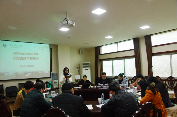 (通讯员:杨赟 编辑:院办)11月30日上午,教育学院学生党员发展分党委预审答辩会在田家炳楼403会议室顺利举行。教育学院分党委书记卢治平、分党委副书记李静、分党委委员但武刚教授、雷江华教授、本科生和研究生辅导员参加了本次会议。会议由分党委副书记李静主持。