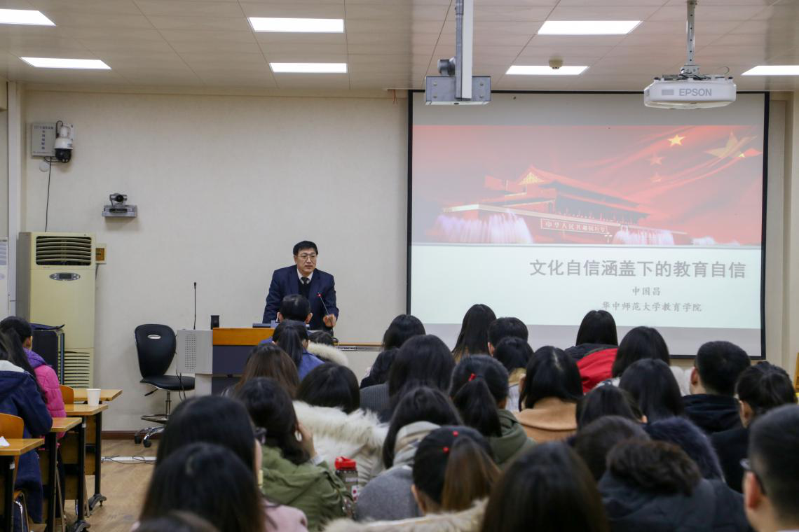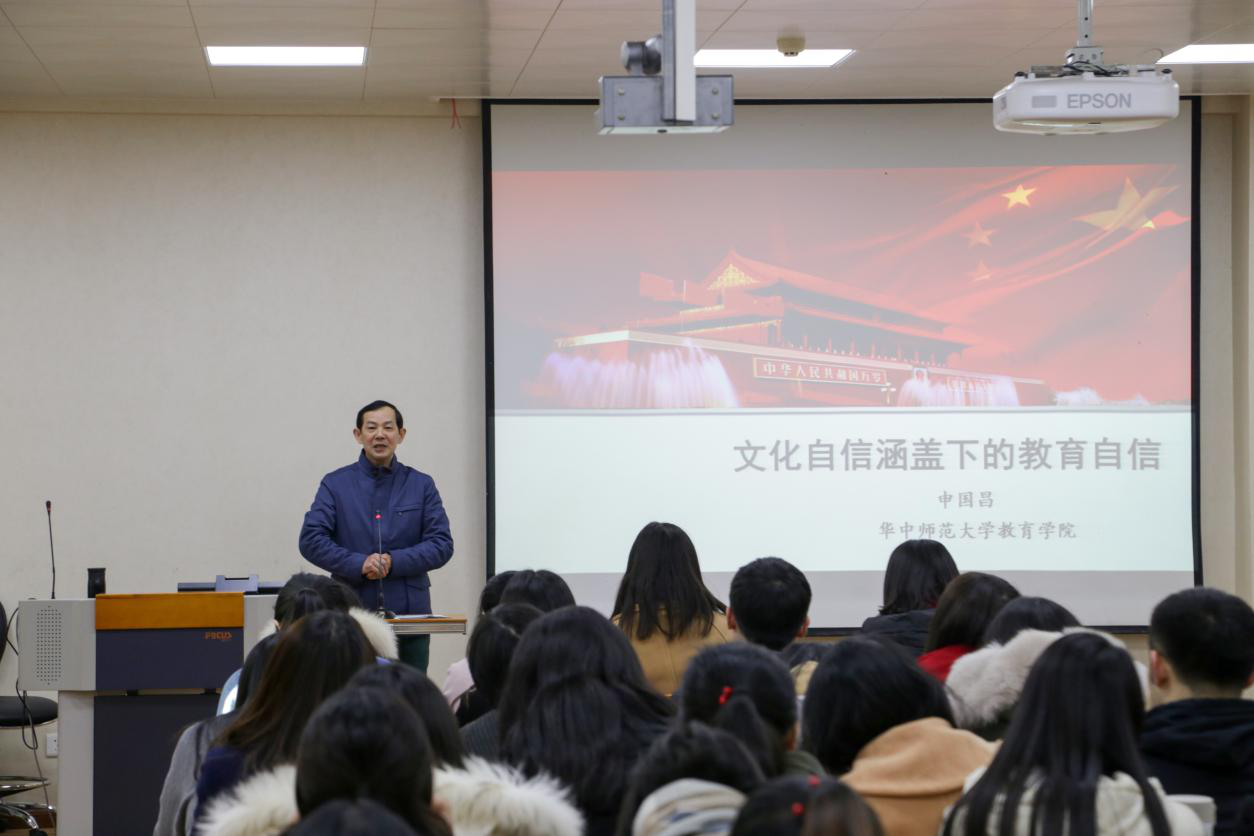 (通讯员:王文娟 摄影:袁腾飞 编辑:孙丹)为更好地学习贯彻党的十九大精神,加强研究生思想引领工作,12月20日下午,由教育学院分党委主办、教育学院研究生会承办的第38期研究生德育课堂在田家炳楼J502教室顺利开讲。华中师范大学学习贯彻党的十九大精神宣讲团成员、教育学院副院长申国昌教授受邀作了题为“文化自信涵盖下的教育自信”的报告。报告由我院分党委书记卢治平主持,研究生辅导员马英和全体研究生党员聆听了报告。