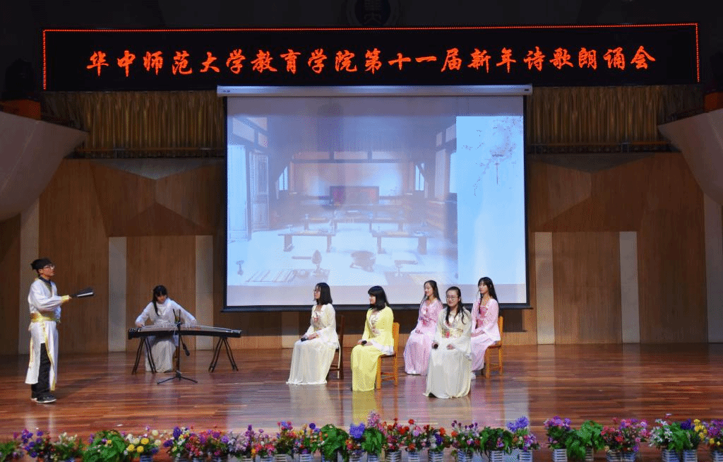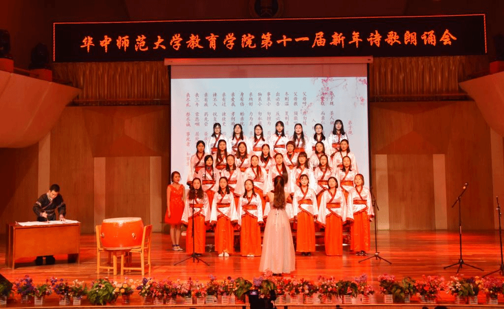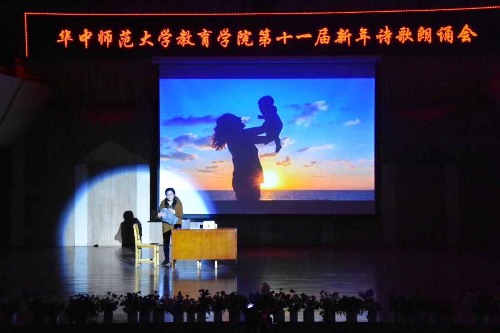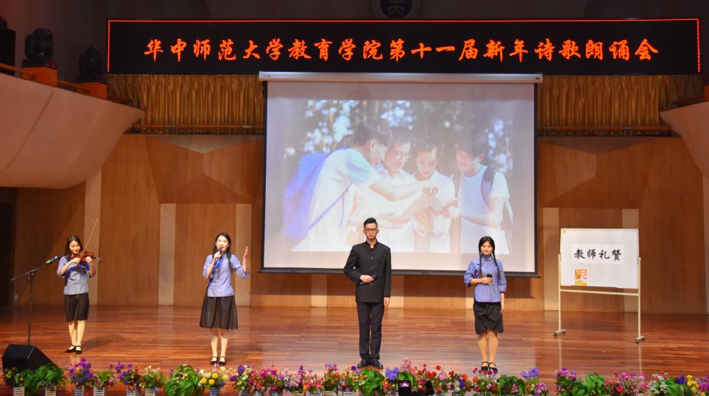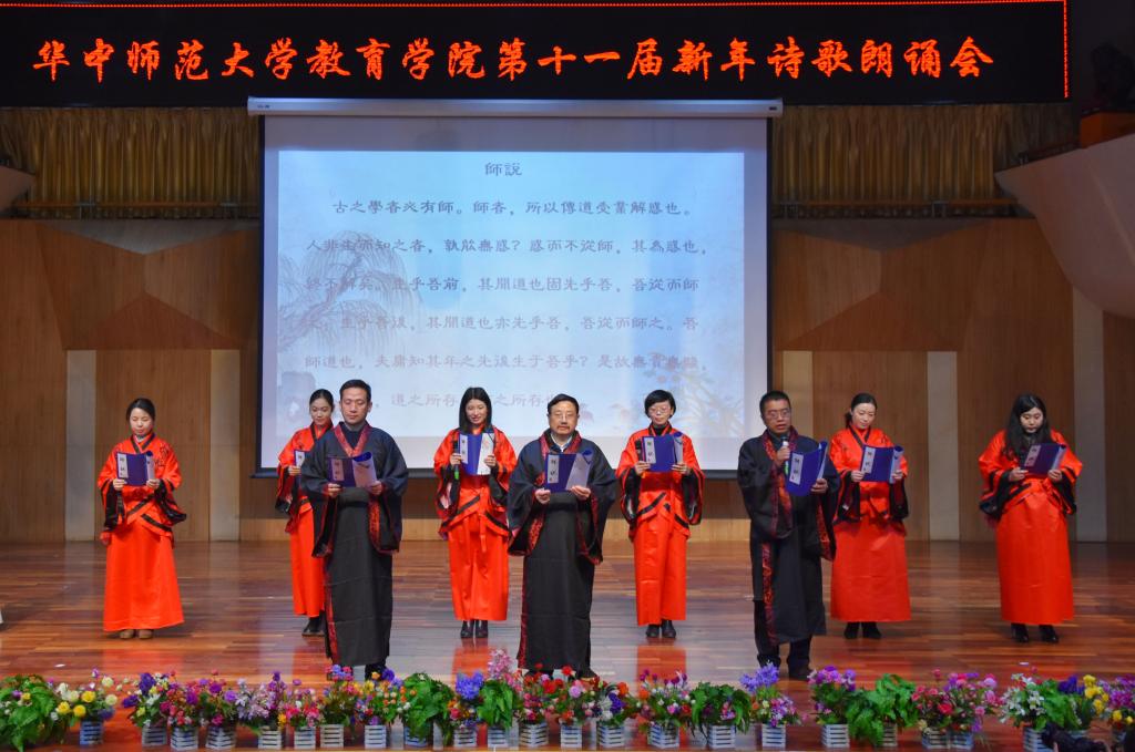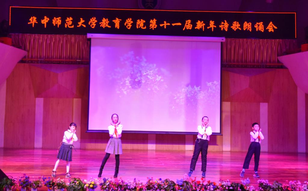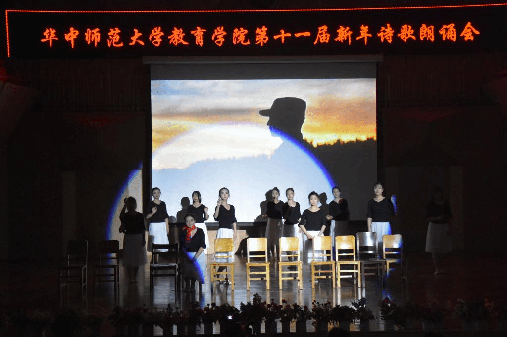 (通讯员:杨赟 摄影:王文娟 袁腾飞 编辑:徐仕晔)12月27日晚,教育学院第十一届新年诗歌朗诵会在华中师范大学音乐厅隆重举行。学院分党委书记卢治平、院长雷万鹏、副院长蔡迎旗、副院长申国昌、副书记李静等40余位教师莅临朗诵会现场,兄弟学院研究生会代表和我院学生400余人观看了朗诵会。本届新年诗歌朗诵会由教育学院分党委主办,教育学院研究生会、团委学生会承办。