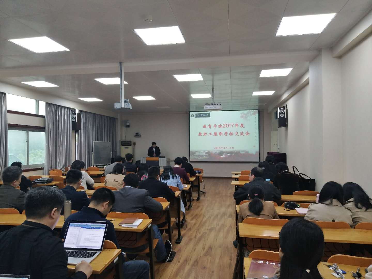 (通讯员:徐仕晔 编辑:徐仕晔)2018年4月13日下午,教育学院2017年度教职工履职考核交流会在田家炳楼502教室举行,交流会由分党委书记卢治平主持,我院全体教职工参加会议。