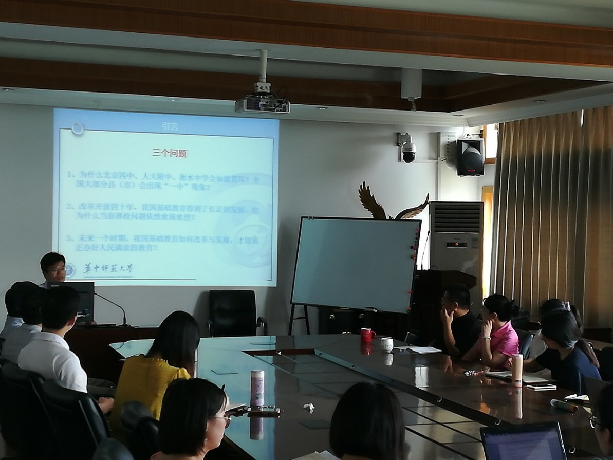 (通讯员:高亚飞 编辑:刘瑞)为加强我院师生学术交流,了解学术实时动态,2018年6月14日12:30,我院在田家炳624会议室开展了题为《名校集团化办学政策朝向何处去?——基于北京市实证研究的思考》的学术午餐会。与会人员有:教育学院副院长申国昌教授,教育经济与管理研究所陈彬教授,教育史与比较教育研究所王建梁教授,课程与教学研究所姚林群副教授、高巍副教授,高等教育学研究所邹义欢博士,《教育与经济》编辑部叶庆娜老师以及教育学院部分硕博研究生。本次会议由申国昌教授主持,张建博士主讲。