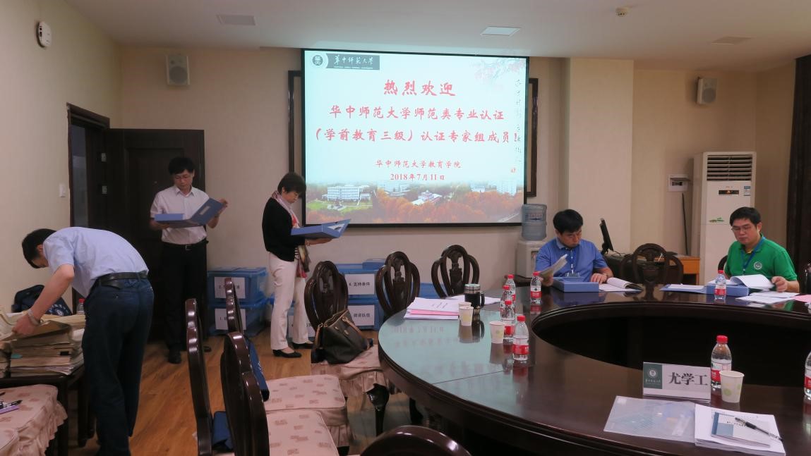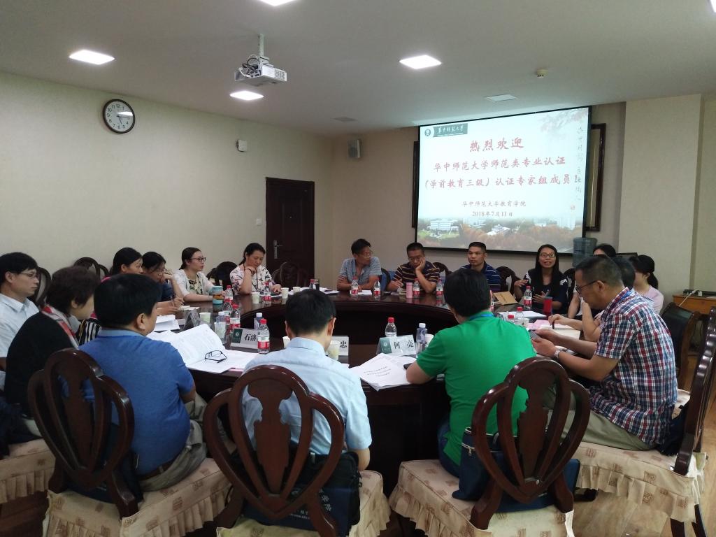 (通讯员:杨娜 编辑:郭士盼)2018年7月11日下午,华中师范大学师范类专业认证(学前教育三级)专家现场考查会议在田家炳大楼403会议室顺利进行。专家组一行五人及教务处相关老师莅临现场考查。学院党政领导、专业教师代表以及学前教育专业学生代表参加会议。